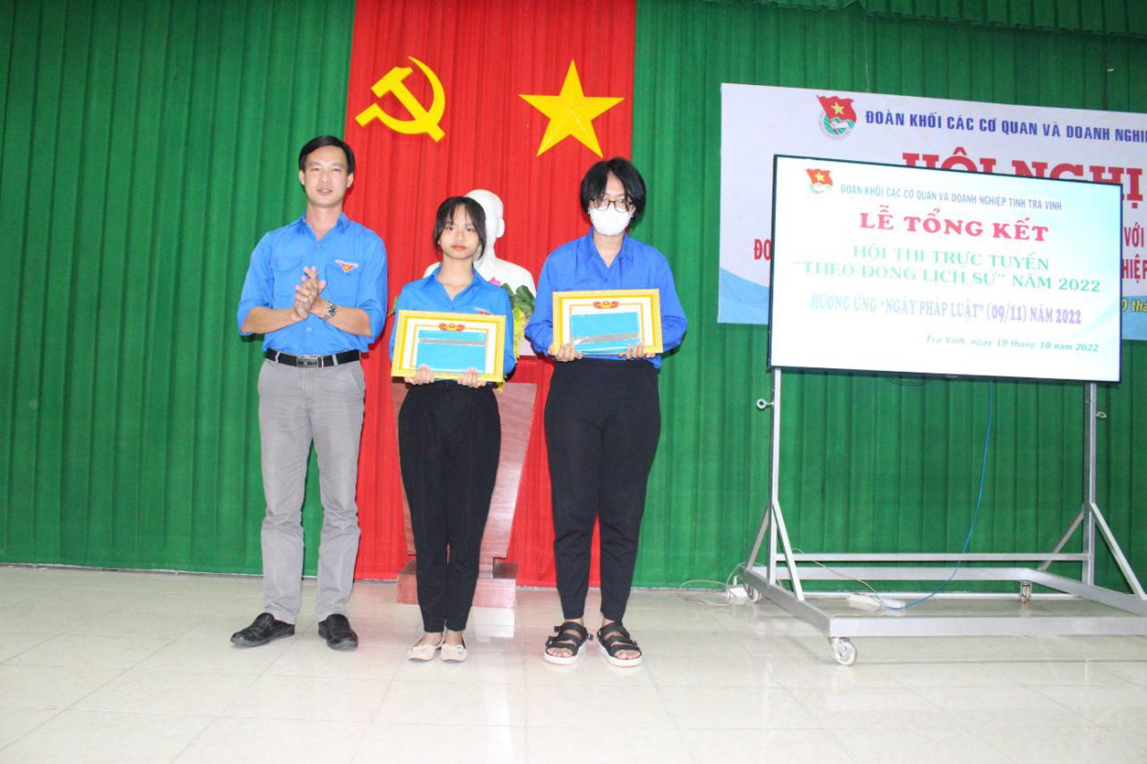 Ngày 19/10/2022, tại hội trường Đảng ủy khối các cơ quan và doanh nghiệp tỉnh. Ban Thường vụ Đoàn khối tổ chức Lễ tổng kết và trao giải hội thi trực tuyến “Theo dòng lịch sử” năm 2022. Tham dự có đồng chí Trần Thị Kim Phượng – Phó Bí thư Thường trực Đảng ủy khối; đồng chí Nguyễn Trọng Nhân – UV.BCH Đảng bộ, Bí thư Đoàn khối; các đồng chí Ủy viên Ban Thường vụ Đoàn khối và 50 thí sinh xuất sắc tham gia Vòng thi chung kết tham dự.