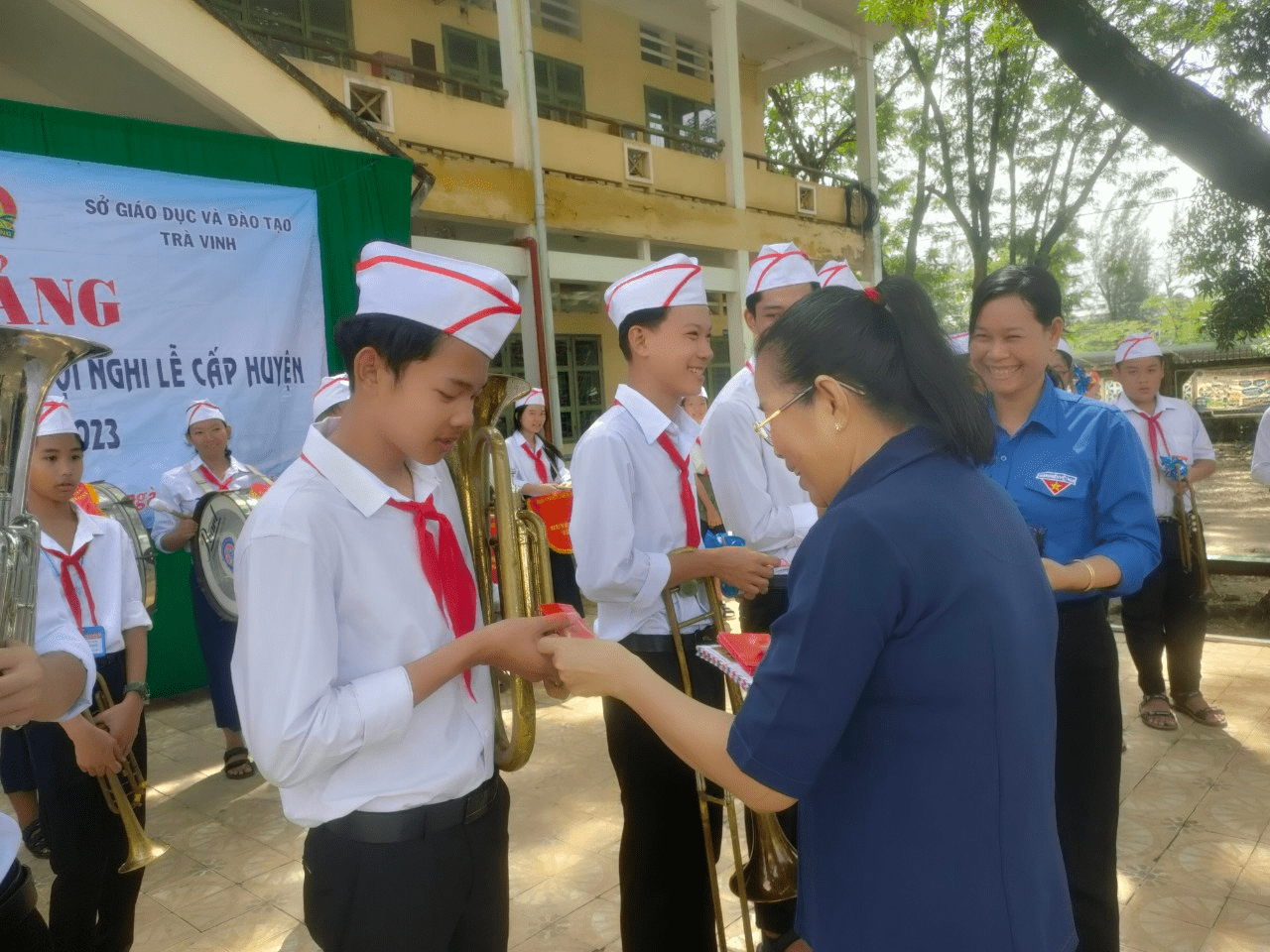 Kết quả sau 09 ngày tập huấn, từ ngày 29/10 – 06/11/2022, 40 em thiếu nhi, Đội viên Đội Nghi lễ và Giáo viên, Tổng phụ trách Đội của Trường Phổ thông Dân tộc Nội trú Trung học cơ sở và Trung học phổ thông huyện Trà Cú được tập huấn, biểu diễn thuần thục 11 bài trống, kèn gồm: Kèn hiệu, Chào cờ, Chào mừng, Quốc ca, Đội ca, Hành khúc Đội TNTP Hồ Chí Minh, Lên Đàng, Mơ ước ngày mai, Chiến sĩ tí hon, Như có Bác Hồ trong Ngày vui đại thắng, Đàn gà con.