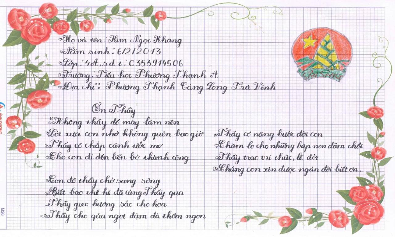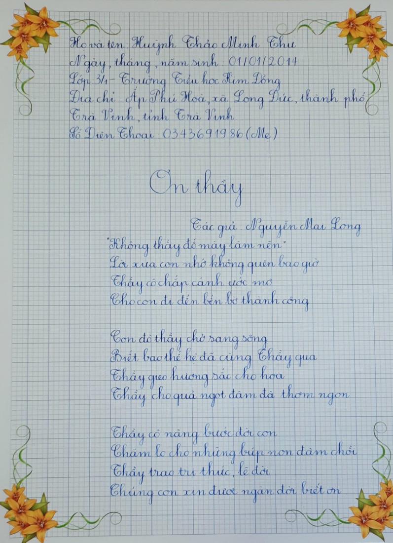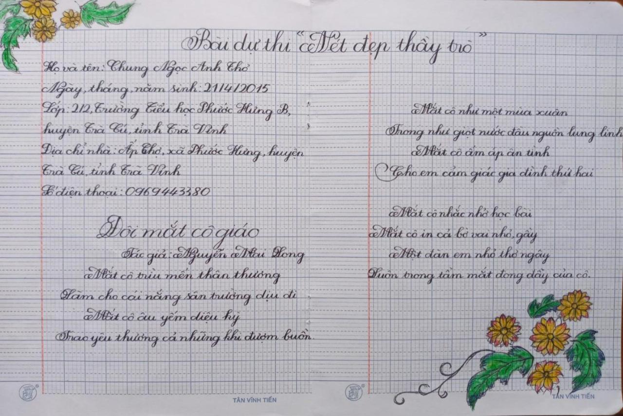 Thực hiện Hướng dẫn số 158-HD/HĐĐTW, ngày 23/10/2022 của Hội đồng Đội Trung ương về việc tham gia cuộc thi “Nét đẹp thầy trò”. Hội đồng Đội tỉnh Trà Vinh triển khai đến các em thiếu nhi có độ tuổi từ 6 đến 10 tuổi (từ lớp 1 đến lớp 5) đang sinh hoạt, học tập tại các Trường Tiểu học, Trung tâm Sinh hoạt Thanh thiếu nhi tỉnh và các cơ sở luyện viết chữ đẹp trên địa bàn tỉnh.