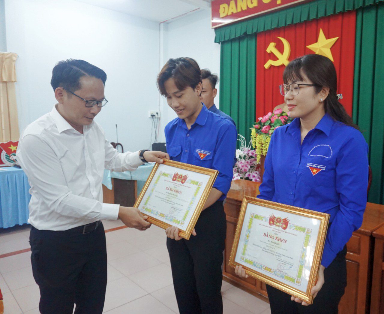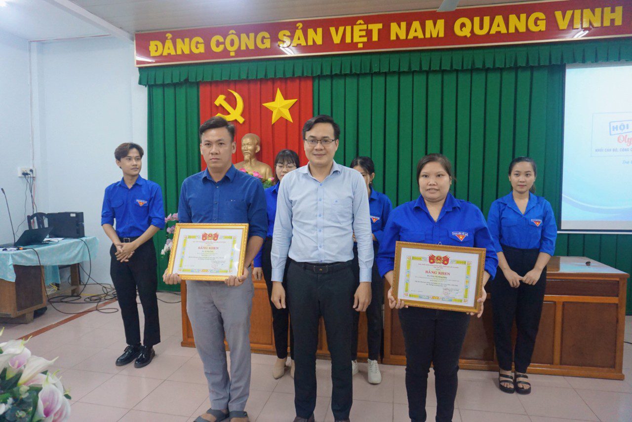 Đồng chí Trần Trí Cường, UV. BCH Trung ương Đoàn, Bí thư Tỉnh đoàn, Trưởng Ban tổ chức hội thi trao bằng khen cho các thí sinh đạt giải