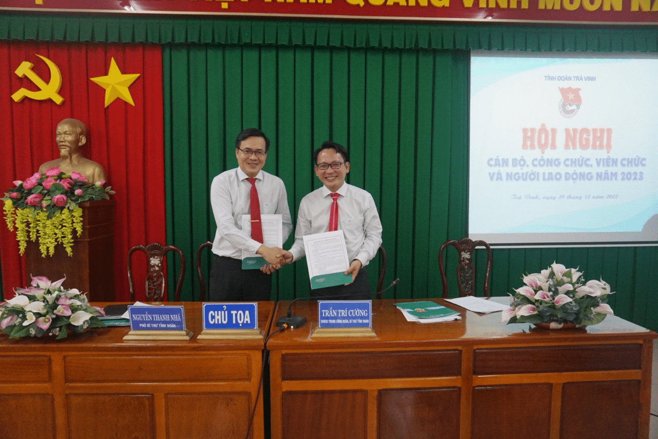Ngày 29/12/2022, được sự thống nhất của Chi ủy Chi bộ và cơ quan Tỉnh đoàn, Công đoàn cơ sở phối hợp với chính quyền tổ chức Hội nghị cán bộ, công chức, viên chức năm 2023. Hội nghị cán bộ, công chức, viên chức (CBCCVC) được tiến hành dưới sự chủ trì của đoàn chủ tịch gồm: đ/c Trần Trí Cường – Bí thư Tỉnh đoàn; đ/c Nguyễn Thanh Nhã – Phó Bí thư Chi bộ – Chủ tịch Công đoàn – Phó Bí thư Tỉnh đoàn và với sự có mặt của 25/29 cán bộ, công chức, viên chức tham dự .