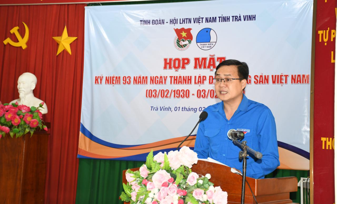 Trong không khí trang trọng của buổi họp mặt, thay mặt cho tuổi trẻ tỉnh nhà, đồng chí Nguyễn Thanh Nhã – Phó Bí thư Tỉnh đoàn, Chủ tịch Hội LHTN Việt Nam tỉnh đã phát biểu ôn lại truyền thống kỷ niệm 93 năm Ngày thành lập Đảng Cộng sản Việt Nam (03/02/1930 -03/02/2023). Đồng chí cũng đề nghị trong năm 2023 với chủ đề “Năm chuyển đổi số các hoạt động của Đoàn”, các hoạt động của Đoàn, Hội, Đội sẽ được chú trọng chuyển đổi số, do đó các cấp bộ Đoàn trong toàn tỉnh tích cực, chủ động, tiên phong tham gia vào quá trình xây dựng chính phủ số, xã hội số; nâng cao năng lực số cho cán bộ, đoàn viên, thanh niên. Bên cạnh đó, tổ chức các hoạt động tuyên truyền, nâng cao nhận thức, tâm thế và phát huy thanh niên tham gia tích cực vào quá trình chuyển đổi số quốc gia. Phát triển các câu lạc bộ, các cuộc thi, ngày hội, sinh hoạt đội, nhóm về công nghệ số, chuyển đổi số; tổ chức các chương trình, diễn đàn… thực hành, công nghệ số trong thanh thiếu nhi.