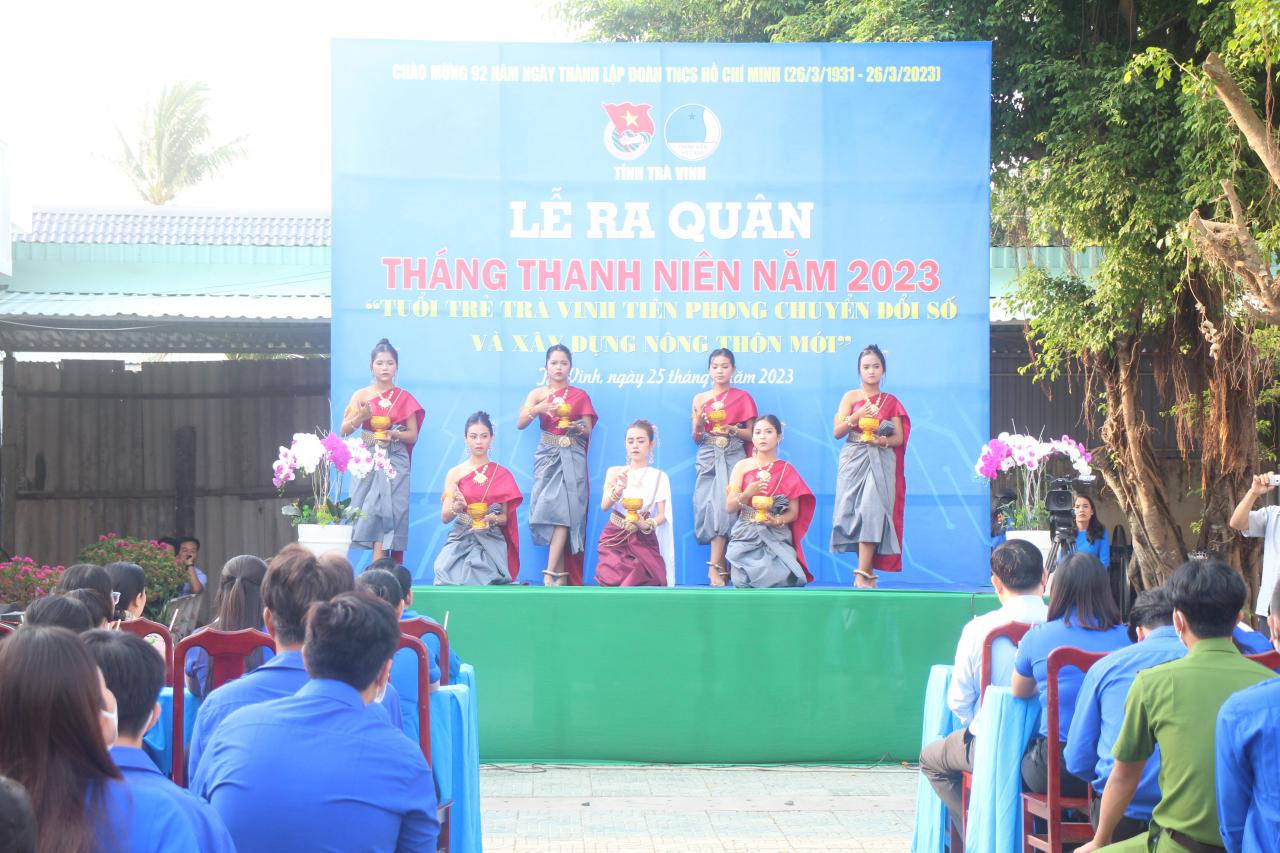 Sáng ngày 25/02/2023, tại xã Ngãi Xuyên, huyện Trà Cú, Ban Thường vụ Tỉnh đoàn Trà Vinh tổ chức Lễ ra quân Tháng Thanh niên năm 2023. Tham dự có đồng chí Kim Rương – Ủy viên Ban Thường vụ Tỉnh ủy, Trưởng Ban Dân vận Tỉnh ủy; đồng chí Trần Trí Cường – Ủy viên Ban Chấp hành Trung ương Đoàn, Bí thư Tỉnh đoàn; đồng chí Nguyễn Thanh Nhã- Phó Bí thư Tỉnh Đoàn; đồng chí Lê Hoàng Phi – Phó Giám đốc Ngân hàng Chính sách xã hội chi nhánh tỉnh Trà Vinh; đồng chí Nguyễn Công Danh – Phó Giám đốc chi nhánh Viettel Trà Vinh; đồng chí Dương Văn Triệu – Tỉnh ủy viên, Bí thư Huyện ủy Trà Cú; lãnh đạo Ủy ban nhân dân huyện Trà Cú, Ban Dân vận Huyện ủy Trà Cú; các đồng chí Ủy viên Ban Thường vụ Tỉnh đoàn, đại diện Ban Thường vụ các Huyện, Thị, Thành đoàn và các Đoàn trực thuộc Tỉnh đoàn; Lãnh đạo Đảng ủy, Ủy ban nhân dân xã Ngãi Xuyên; Phóng viên Báo Trà Vinh, Đài Phát thanh – Truyền hình Trà Vinh và 200 bạn đoàn viên, hội viên, thanh niên tham dự.