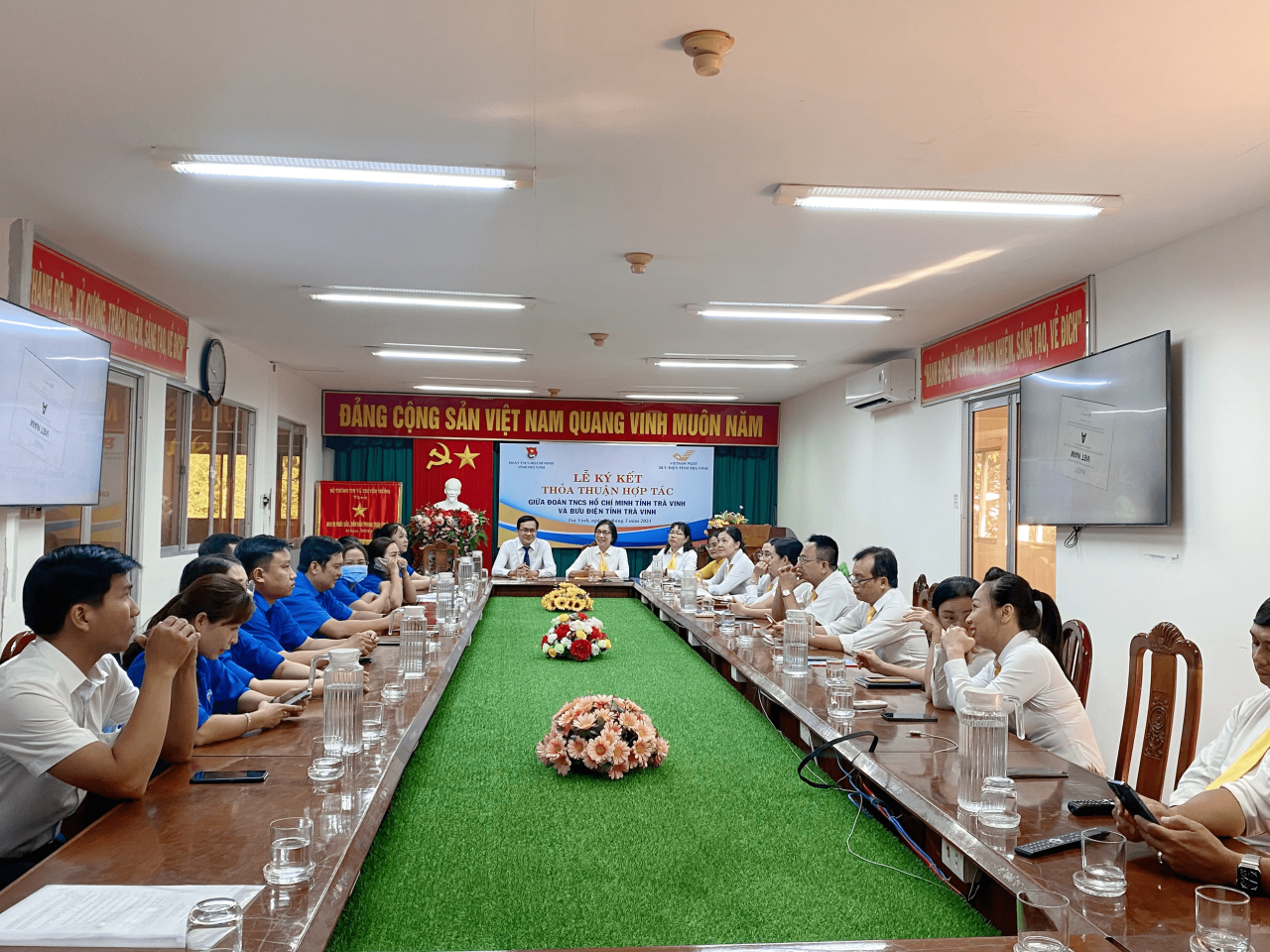 Chiều ngày 20/3, tại trụ sở Bưu điện tỉnh Trà Vinh, Tỉnh đoàn Trà Vinh, Bưu điện tỉnh Trà Vinh tổ chức Lễ ký kết thỏa thuận giai đoạn 2023 – 2026. Dự lễ ký kết có đồng chí Nguyễn Thanh Nhã, Phó Bí thư Tỉnh đoàn; đồng chí Đỗ Thị Hồng Thu – Bí thư Đảng ủy, Giám đốc Bưu điện tỉnh cùng dự có các đồng chí Ban Thường vụ các Huyện, Thị, Thành đoàn; các đồng chí lãnh đạo các phòng chức năng Bưu điện tỉnh Trà Vinh và lãnh đạo các Bưu điện huyện/thành phố trực thuộc Bưu điện tỉnh.
