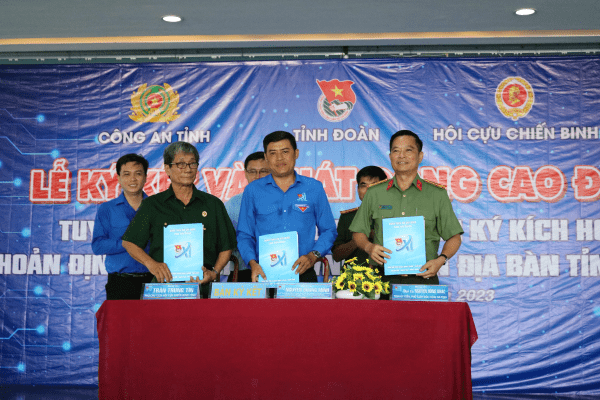 ĐTN: Sáng15/5, tại Nhà thiếu nhi Tiền Giang, Ban Thường vụ Tỉnh Đoàn phối hợp với Ban Giám đốc Công an tỉnh và Ban Thường vụ Hội Cựu Chiến binh tỉnh tổ chức Chương trình ký kết và phát động cao điểm tuyên truyền, hướng dẫn kích hoạt tài khoản định danh điện tử VNeID trên địa bàn tỉnh năm 2023.
