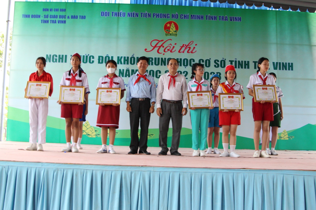 Qua gần 01 ngày tranh tài sôi nổi và nhiều sáng tạo, kết thúc hội thi Liên đội Trường Phổ thông Dân tộc nội trú THCS huyện Châu Thành đã xuất sắc đạt giải Nhất, giải Nhì thuộc về Đội Nghi thức của Liên đội trường THCS Trần Quốc Tuấn thành Phố Trà Vinh, Đội Nghi thức của Liên đội trường THCS Ngũ Lạc huyện Duyên Hải đã đạt giải ba, 06 đơn vị còn lại đạt giải khuyến khích. Em Lê Quỳnh Nguyên, Liên đội trường THCS Trần Quốc Tuấn thành Phố Trà Vinh đạt giải Chỉ huy Đội xuất sắc.