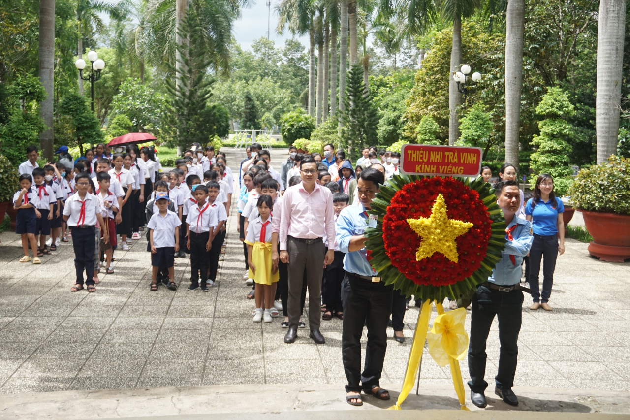 Thường trực Tỉnh đoàn và các em học sinh dâng hoa, dâng hương tại Đền thờ Bác