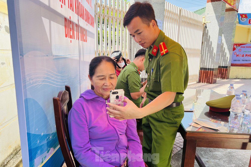 Người dân được cán bộ công an, đoàn viên thanh niên hướng dẫn cài đặt VNeID tận tình.
