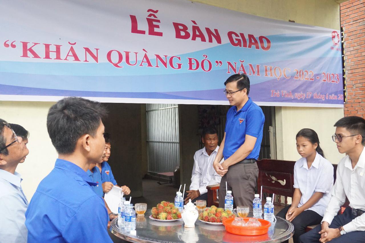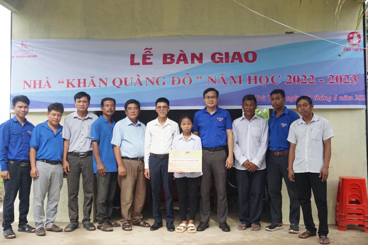 Sáng ngày 17/6/2023, Hội đồng Đội tỉnh cùng với sự đồng hành của Quỹ Từ thiện Kim Oanh tổ chức lễ bàn giao nhà “Khăn quàng đỏ” trao tặng cho em Trần Kim Thị Thảo Nguyên học sinh lớp 4/1, Trường Tiểu học Đôn Xuân B, tại xã Đôn Châu, huyện Duyên Hải.