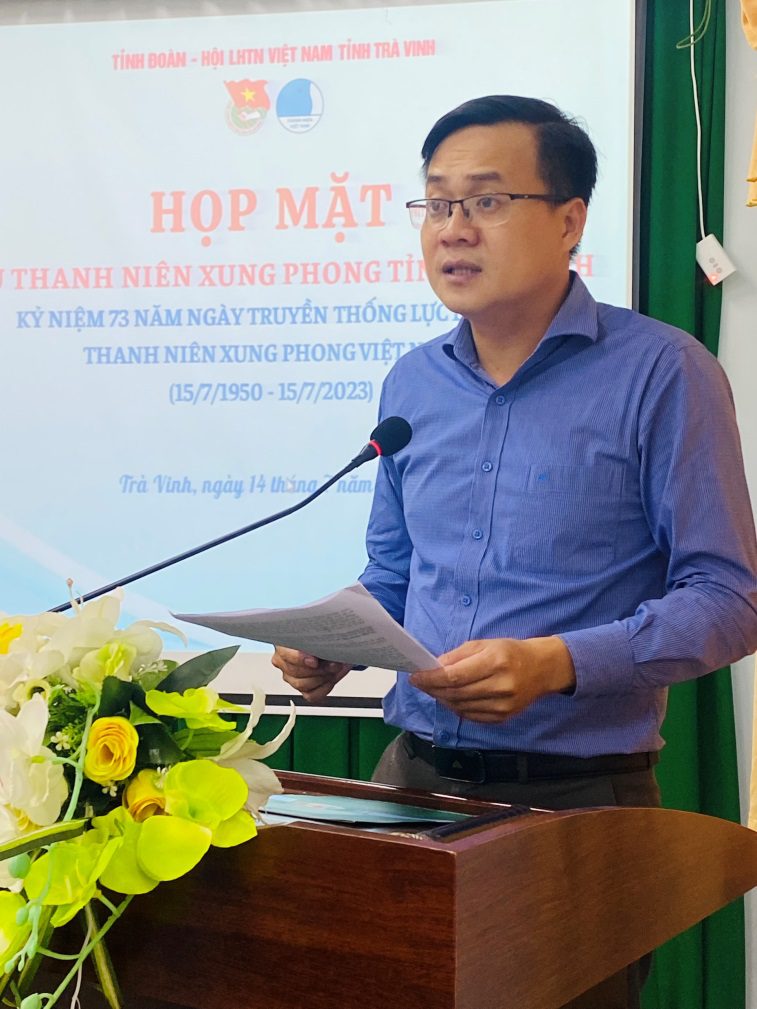 Đồng chí Nguyễn Thanh Nhã, Phó Bí thư Tỉnh đoàn, Chủ tịch Ủy ban Hội tỉnh, Trưởng Ban Liên lạc Cựu TNXP tỉnh Trà Vinh phát biểu tại buổi họp mặt