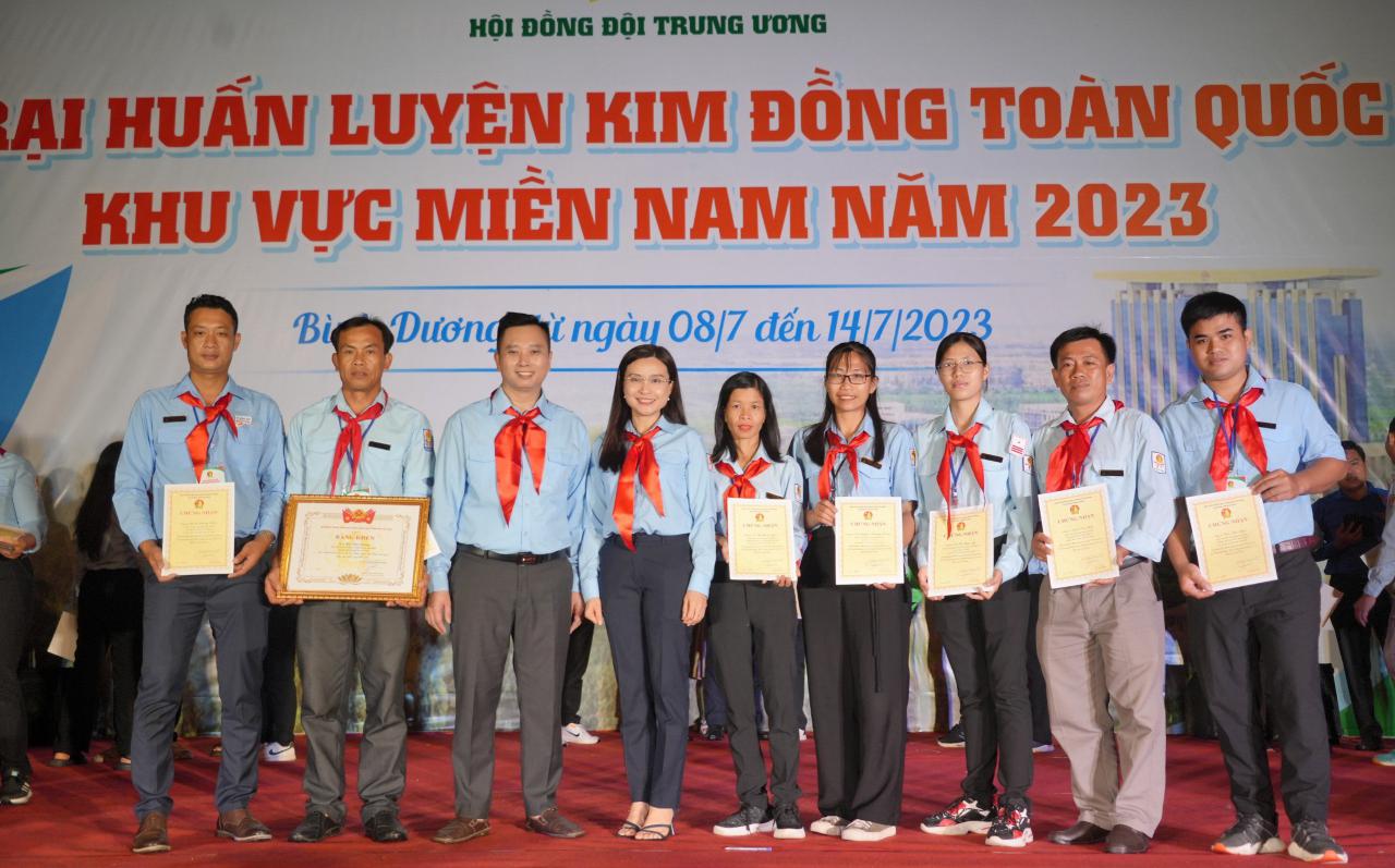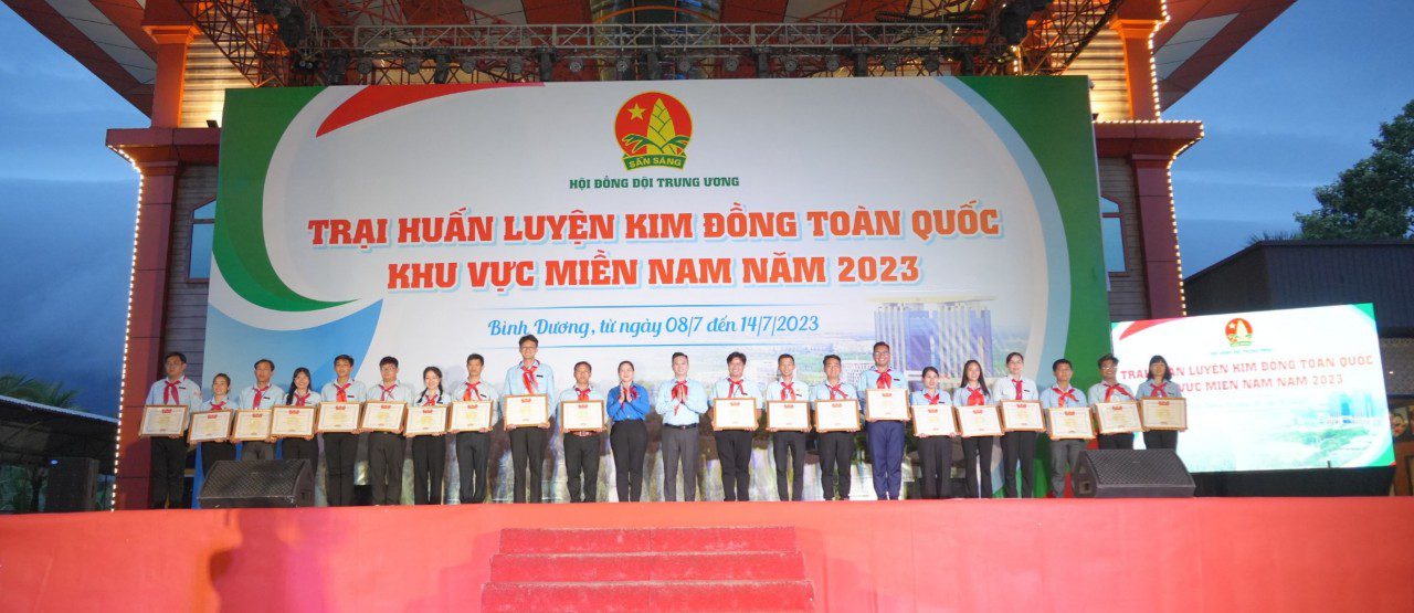 Chiều ngày 14/7/2023, Trại huấn luyện Kim Đồng toàn quốc năm 2023 khu vực phía Nam đã tổng kết và bế mạc tại tỉnh Bình Dương sau 07 ngày hoạt động sôi nổi (từ ngày 08 – 14/7/2023). Năm nay, Trại có sự tham gia của 175 trại sinh là các thầy, cô Giáo viên làm tổng phụ trách Đội; cán bộ phụ trách thiếu nhi, cán bộ chuyên trách của 22 tỉnh, thành phố khu vực Miền Nam, trong đó Trà Vinh cử 07 đồng chí tham gia.