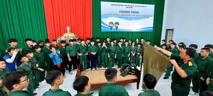 Thứ hai về rèn luyện kỹ năng: các em được trang bị cơ bản về kỹ năng xã hội, kỹ năng sinh hoạt tập thể, kỹ năng làm việc nhóm, khả năng tiếp cận và giao tiếp ứng xử, chia sẽ thông qua các chuyên đề: kỹ năng lắng nghe, quản lý cảm xúc trong căng thẳng và xung đột, “trí tuệ cảm xúc – chìa khóa để thành công trong kỷ nguyên trí tuệ nhân tạo”, kỹ năng xây dựng kế hoạch ‘Học khôn ngoan – mà không gian nan”, cùng với các hoạt động trải nghiệm tham quan khu chiến đấu giả định trong diễn tập khu vực phòng thủ tỉnh Trà Vinh; viếng Đền Bác…