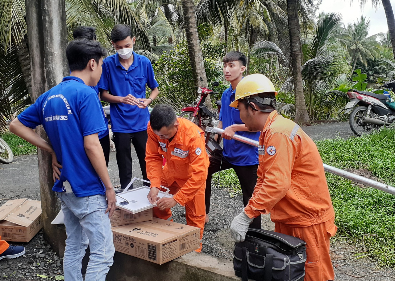 TRÀ VINH: ĐỘI HÌNH CHUYÊN SỬA CHỮA THIẾT BỊ ĐIỆN, LẮP ĐÈN CHIẾU SÁNG TRONG CHIẾN DỊCH THANH NIÊN TÌNH NGUYỆN HÈ TỈNH TRÀ VINH NĂM 2023