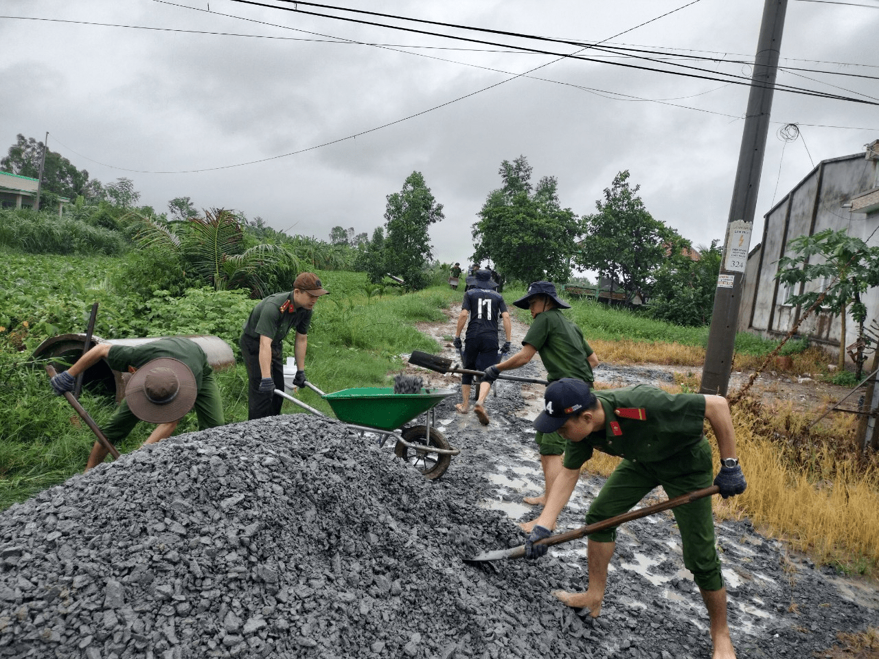 Trong ngày, Đoàn đã đến thăm 50 Chiến sỹ tình nguyện Hành quân Xanh của Đoàn Thanh niên Công an tỉnh đang thực hiện Chiến dịch tại ấp Đầu Giồng A, xã Phước Hưng, huyện Trà Cú với các công trình phần việc như: phối hợp người dân địa phương trải đá 200m đường giao thông nông thôn, sửa chữa nhà cho người dân.