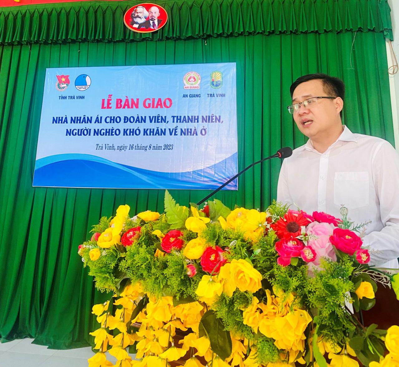 Đồng chí Nguyễn Thanh Nhã, Phó Bí thư Tỉnh đoàn, Chủ tịch Ủy ban Hội LHTN Việt Nam tỉnh phát biểu tại buỗi Lễ bàn giao nhà