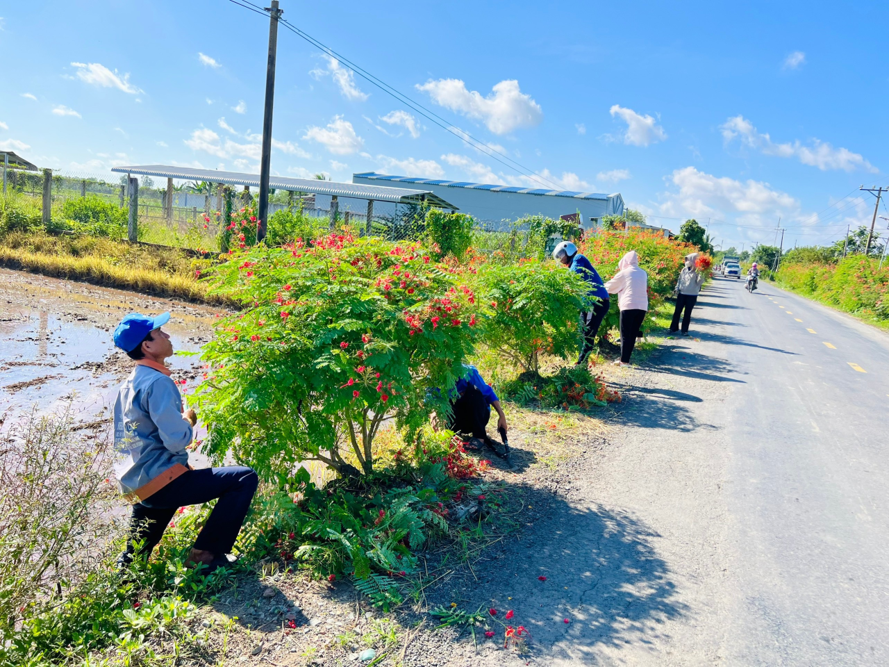 Sau Lễ phát động, các bạn đoàn viên, thanh niên, học sinh và người dân tiến hành ra quân vệ sinh cảnh quan môi trường, phát hoang bụi rậm, trồng mới 300 cây xanh với tuyến đường dài 1km, sửa chữa tuyến đường đèn dài 1km, vớt lục bình khơi thông dòng chảy với chiều dài 500m dọc theo tuyến đường tại ấp Rạch Rô 1, xã Nhị Long, ra mắt mô hình phòng chống rác thải nhựa “Chợ dân sinh giảm thiểu các rác thải nhựa”, với tổng kinh phí trên 25 triệu đồng.