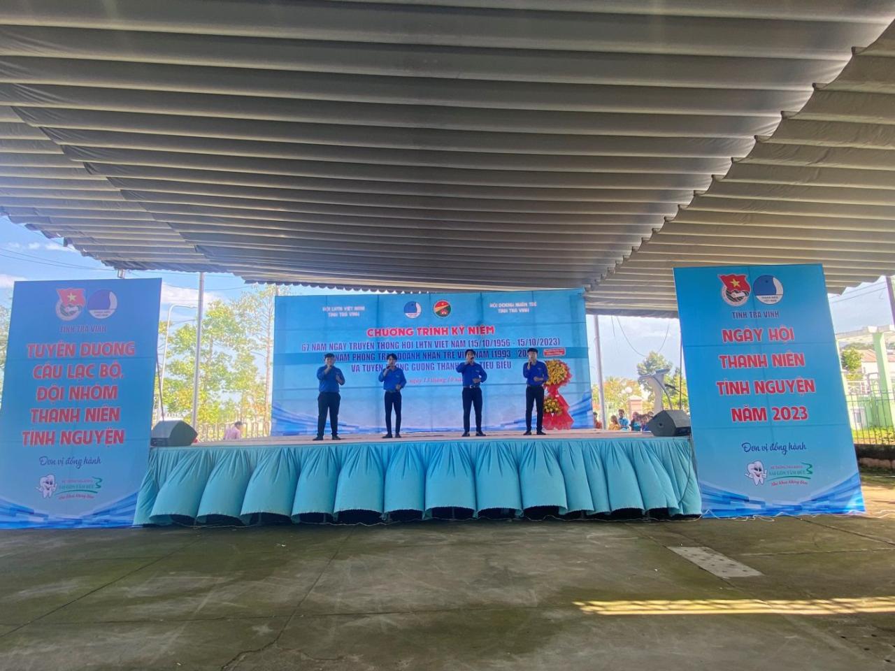 Tại Chương trình, Tỉnh đoàn, Ủy ban Hội tỉnh đã trao tặng bằng khen cho 02 tập thể xuất sắc trong hoạt động tình nguyện gồm Câu lạc bộ Hiến máu tình nguyện trực thuộc Hội Sinh viên trường Đại học Trà Vinh và Đội Thanh niên xung kích Chữ thập đỏ tỉnh Trà Vinh. Với thành nổi bật cụ thể như: Câu lạc bộ Hiến máu tình nguyện – Hội sinh viên trường Đại học Trà Vinh được thành lập từ năm 2008, đên nay đã hơn 15 năm hoạt động Câu lạc bộ đã vận động hiến tổng cộng hơn 15.000 đơn vị máu. Hằng năm, CLB CLB phối hợp với BVHH-TM Cần Thơ và Hội Chữ thập đỏ tỉnh TV để tổ chức từ 2-3 đợt hiến máu vận động được hơn 1000 đơn vị máu góp phần cứu chữa cho rất nhiều bệnh nhân. Đội Thanh Niên Xung Kích Chữ Thập Đỏ tỉnh Trà Vinh được thành lập đến nay đã được 06 năm, tiền thân là Đội Thanh niên xung kích Thành phố Trà Vinh, với phương châm hoạt động “Không lương – Không phân biệt – Không ngại khó khăn” đội đã hỗ trợ tốt các công tác an sinh xã hội như: chuyển viện miễn phí cho hơn 500 trường hợp bệnh nhân ngèo, tham gia tìm kiếm cứu nạn hơn 30 trường hợp, vận động kinh phí, quà, nhu yếu phẩm với tổng số tiền hơn 02 tỷ đồng. Đồng thời tuyên dương 03 cá nhân có thành tích xuất sắc trong công tác tình nguyện gồm anh Tăng Hữu Phước (huyện Duyên Hải), anh Huỳnh Hoàng Triệu (Thành phố Trà Vinh), anh Võ Minh Duy (Hội Sinh viên trường Đại học Trà Vinh),..