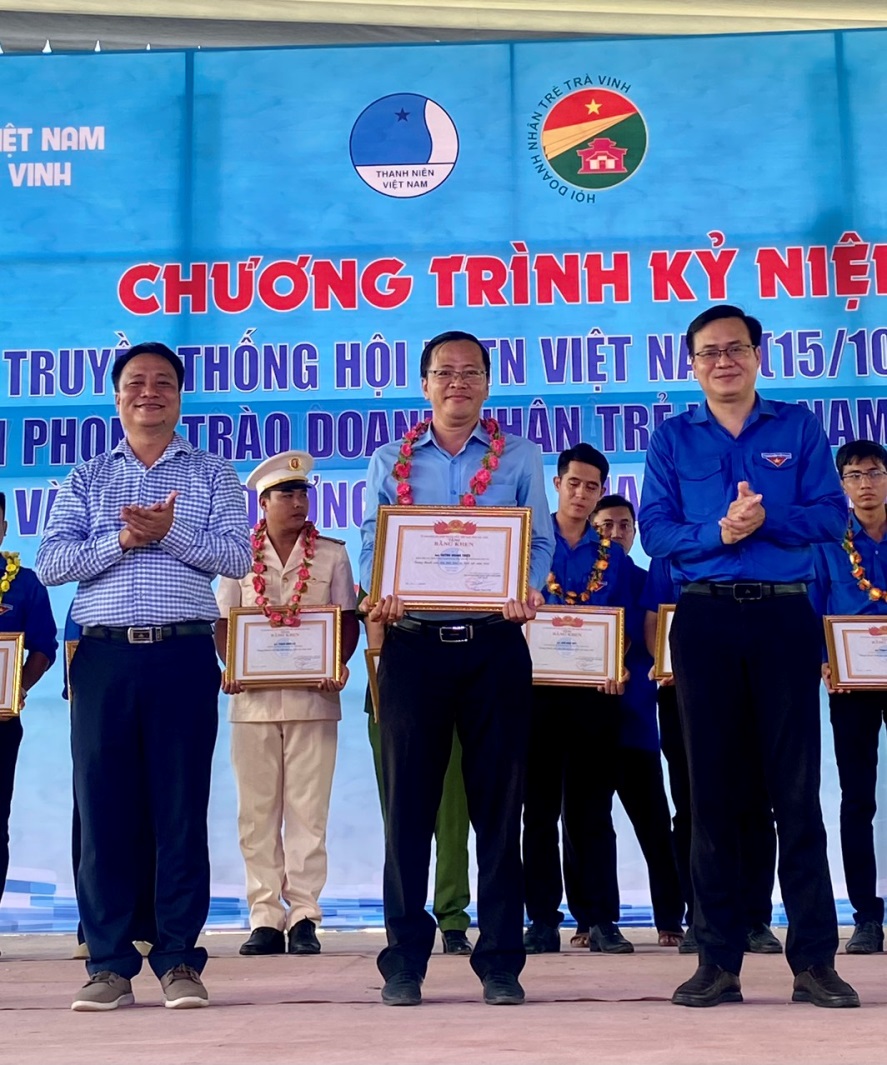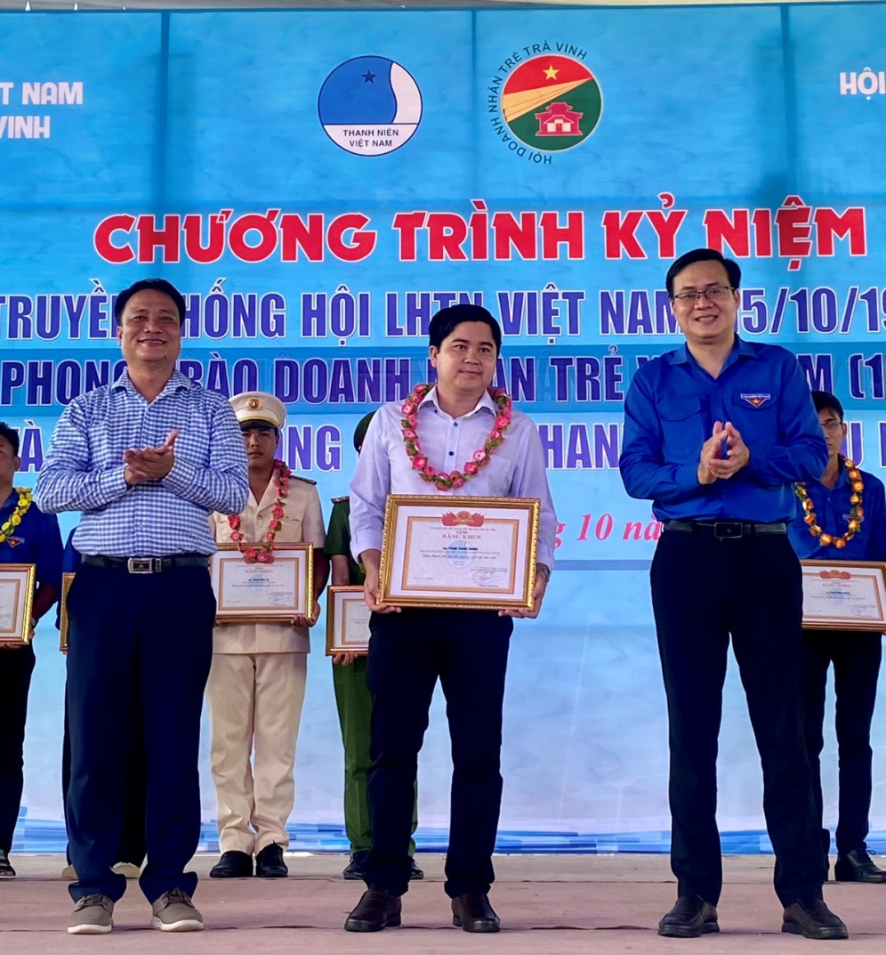 Nhằm ghi nhận, biểu dương những hội viên của Hội Doanh nhân trẻ tỉnh có thành tích xuất sắc, nội bật trong tham gia các hoạt động của Hội và đặc biệt là đồng hành cùng các tổ chức Đoàn, Hội các cấp trong công tác an sinh xã hội, tại Chương trình Kỷ niệm 67 năm ngày truyền thống Hội Liên hiệp Thanh niên Việt Nam (15/10/1956 – 15/10/2023) và 30 năm phong trào Doanh nhân trẻ Việt Nam (1993 – 2023), Ủy ban Hội LHTN Việt Nam tỉnh Trà Vinh tuyên dương 03 doanh nhân trẻ tiêu biểu của Hội Doanh nhân trẻ tỉnh Trà Vinh.