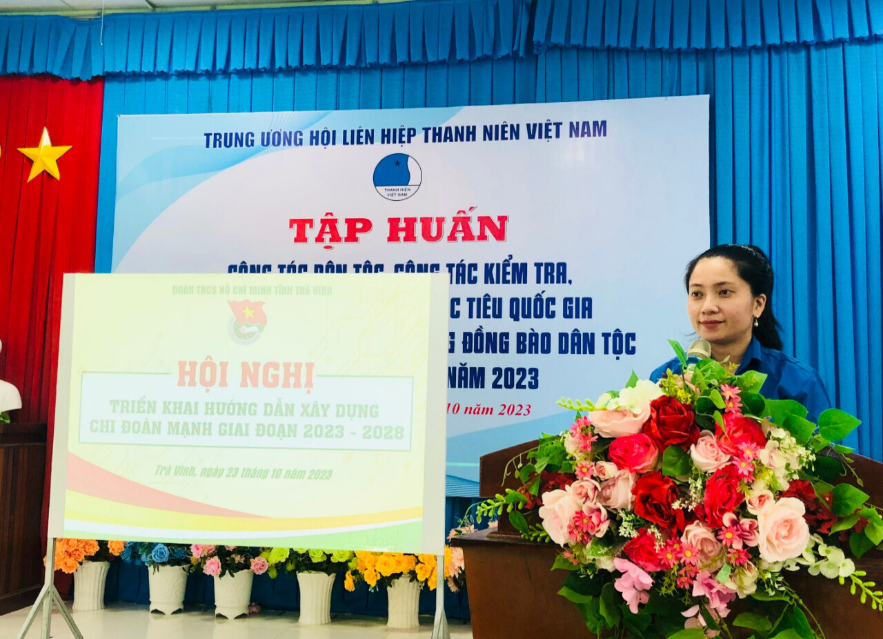 Vào chiều ngày 23/10/2023, Ban Thường vụ Tỉnh đoàn Trà Vinh tổ chức Hội nghị triển khai hướng dẫn xây dựng “Chi đoàn mạnh” giai đoạn 2023 – 2028” đến các Huyện, Thị, Thành đoàn và Đoàn trực thuộc (Hội nghị được tổ chức lồng ghép nhân dịp Hội nghị tập huấn công tác dân tộc, công tác kiểm tra, giám sát triển khai chương trình mục tiêu quốc gia phát triển vùng đồng bào dân tộc thiểu số và miền núi, định hướng cho cán bộ Đoàn, Hội trong khởi nghiệp, phát triển kinh tế nông nghiệp tại địa phương do Trung ương Hội Liên hiệp Thanh niên Việt Nam chọn Trà Vinh đăng cai tổ chức).