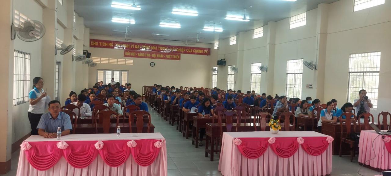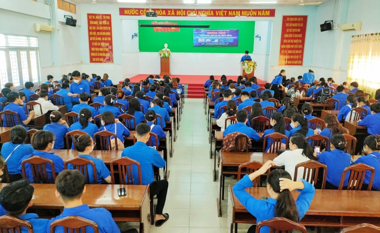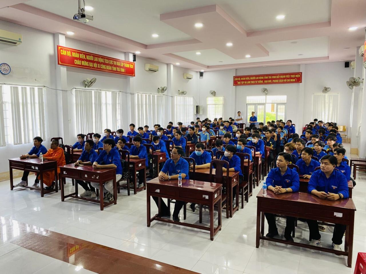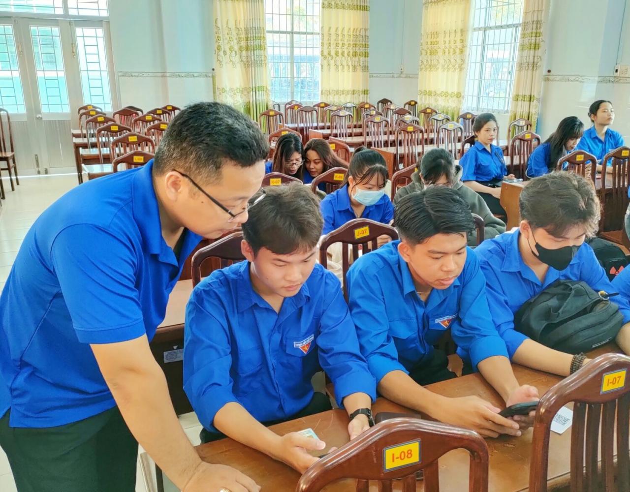 Đồng chí Nguyễn Chí Thanh, Bí thư Chi đoàn Viễn thông Trà Vinh triển khai chương trình tại điểm Đoàn trường Cao đẳng Y tế Trà Vinh