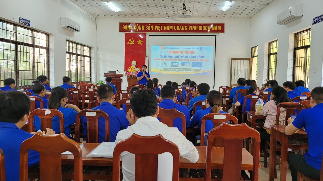 Ủy ban Hội huyện thường xuyên tổ chức hoạt động tuyên truyền, nâng cao nhận thức của thanh niên về chuyển đổi số quốc gia. Phối hợp Trung tâm Vietel và VNPT Trà Vinh tổ chức 02 cuộc tập huấn nâng cao năng lực số cho hội viên, thanh niên. Nội dung về hướng dẫn công dân đăng ký tài khoản và nộp hồ sơ trực tuyến trên cổng dịch vụ công của tỉnh; nộp, trả kết quả thông qua dịch vụ bưu chính công ích khi thực hiện dịch vụ công trực tuyến, hướng dẫn thanh toán qua các ứng dụng không dùng tiền mặt; hướng dẫn hội viên, thanh niên về an toàn thông tin trong chuyển đổi số gắn với triển khai chữ ký số cộng đồng hưởng ứng Ngày chuyển đổi số quốc gia 10/10, có hơn 223 HVTN tham gia.