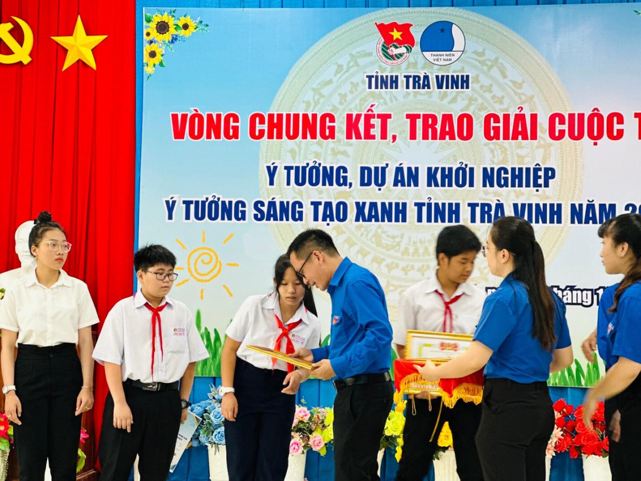 Các ý tưởng: Máy diệt muỗi bằng năng lượng mặt trời của nhóm tác giả Nguyễn Phúc Toàn và Huỳnh Ngọc Lan Anh (Trường THCS Lý Tự Trọng, TP Trà Vinh); Biến rác thải nhựa thành vật liệu thu hồi khí CO2 của tác giả Lâm Minh Triều (Trường Đại học Trà Vinh); Chỉ nha khoa từ bột bắp của tác giả Danh Hùng Phương Nhi (Thành phố Trà Vinh); Giải pháp Hệ thống quản lý, lưu trữ và chia sẻ GreenMIS (Chia sẻ “hoạt động xanh”, “hành động xanh”, “tấm gương xanh”) của tác giả Phan Văn Thanh và Nguyễn Chí Thanh (Đoàn Khối các CQ&DN tỉnh) đã xuất sắc đạt giải Nhất Cuộc thi.