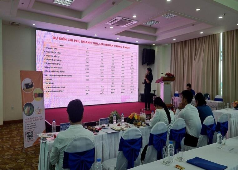 Ban Nguyễn Thị Thanh Vân tham gia thuyết trình tại vòng Bán kết (khu vực phía Nam) của Cuộc thi Dự án khởi nghiệp Thanh niên nông thôn năm 2023
