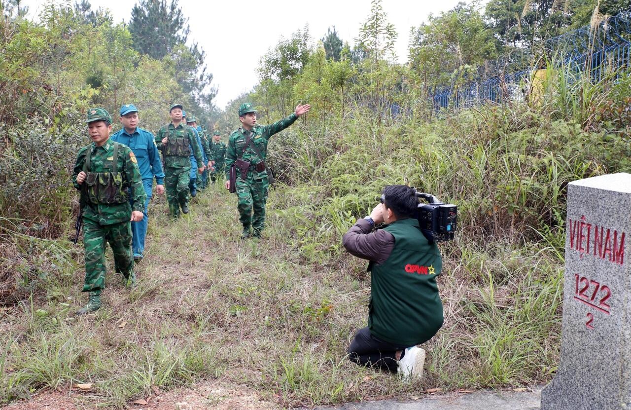 Bộ đội Biên phòng phối hợp với lực lượng dân quân tự vệ tuần tra bảo vệ biên cương. (Ảnh: Phan Văn Giang)