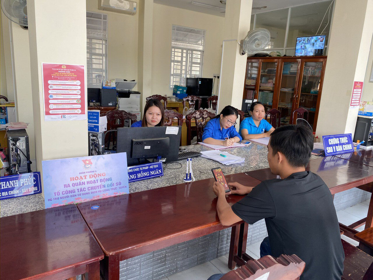 | Đ/c Đặng Hồng Ngân – UV BCH Đoàn phường 6 hỗ trợ tổ công tác chuyển đổi số |
