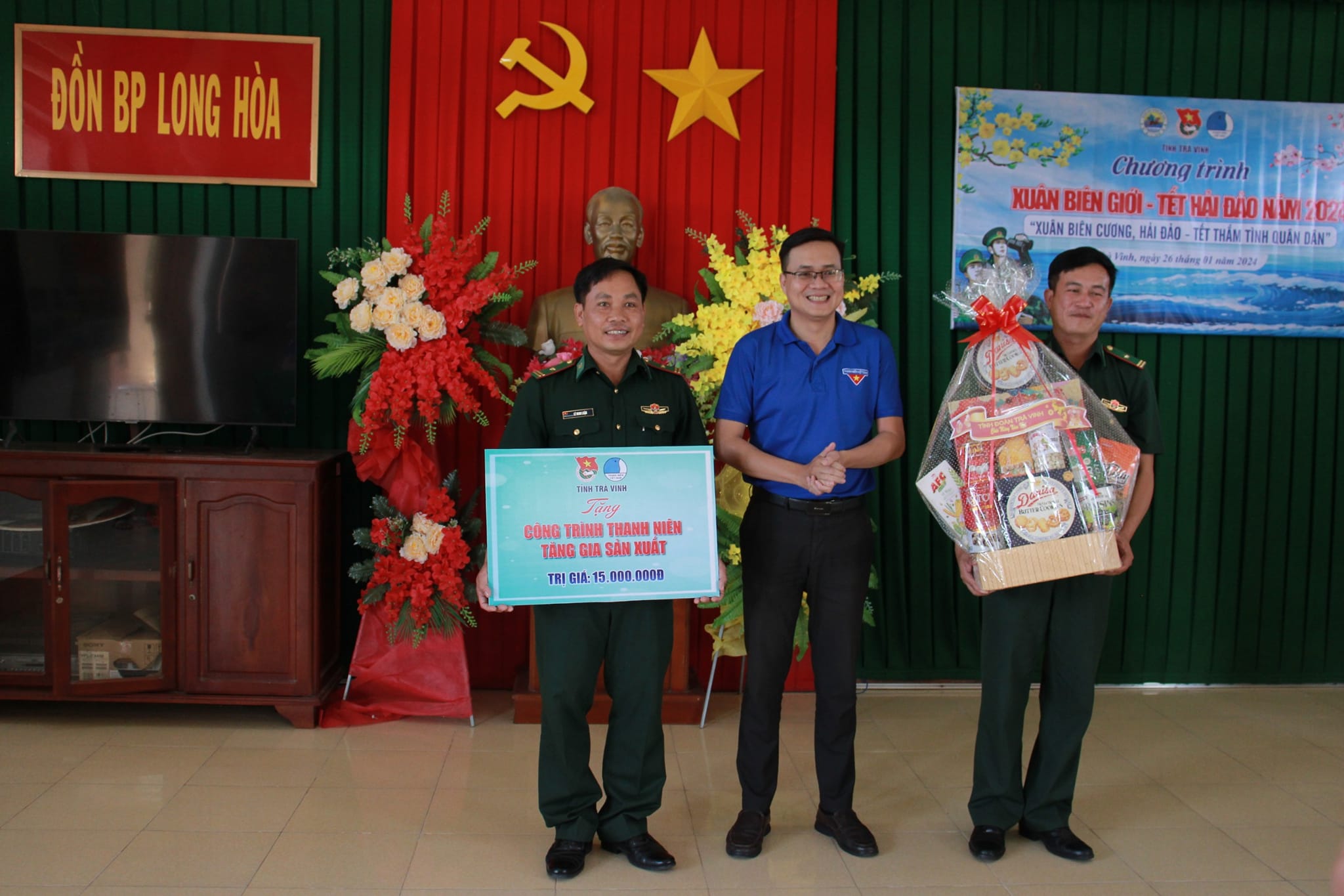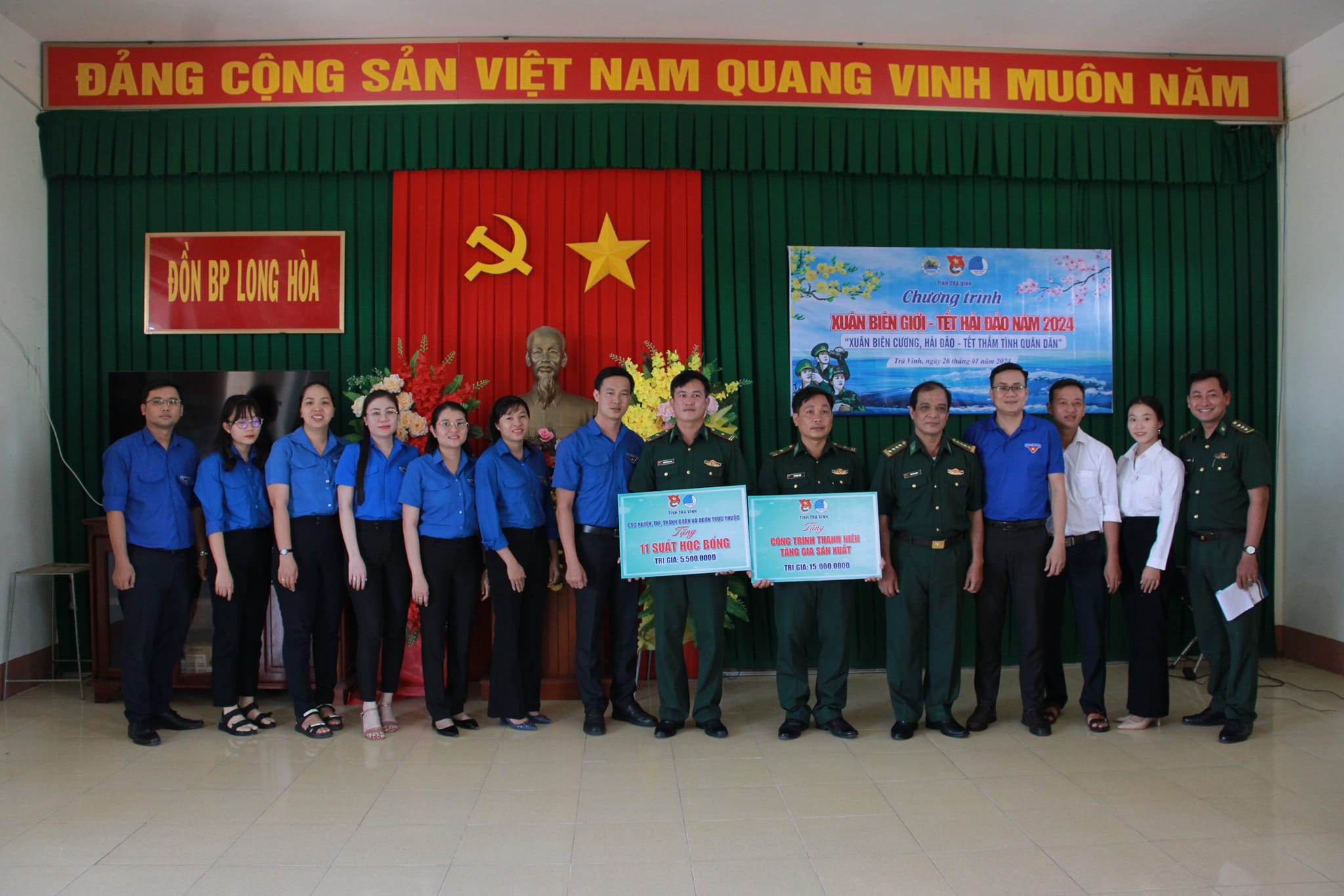 Tại chương trình, lãnh đạo Tỉnh đoàn đã phát biểu thăm hỏi động viên, chúc tết và tặng 01 công trình thanh niên tăng gia sản xuất trị giá 15 triệu đồng, 01 phần quà cho cán bộ, chiến sĩ Đồn Biên phòng Long Hòa. Dịp này, 11 đơn vị huyện, thị, thành đoàn và đoàn trực thuộc Tỉnh đoàn cũng dành tặng 11 suất học bổng cho con cán bộ, chiến sĩ Đồn Biên phòng Long Hòa.