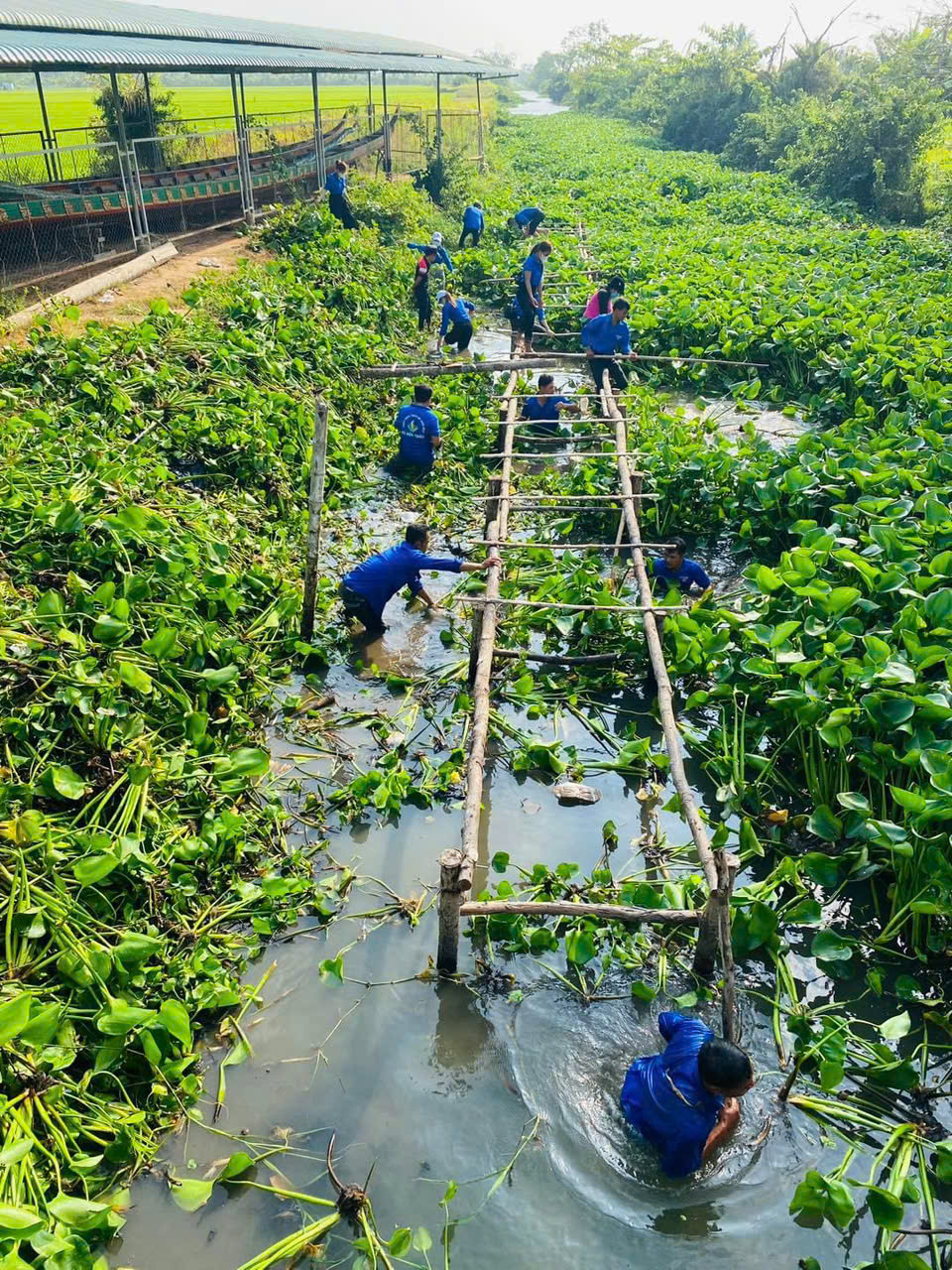 Thực hiện trục vớt lục bình khơi thông dòng chảy