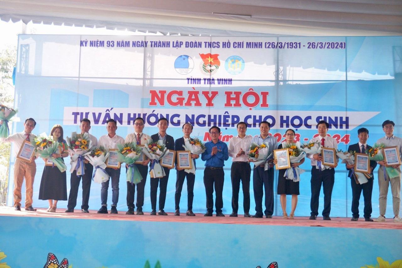 Đồng chí Trần Trí Cường – Ủy viên BCH Trung ương Đoàn, Bí thư Tỉnh đoàn tặng hoa và thư cám ơn các trường Đại học, Cao đẳng, Trung tâm trong và ngoài tỉnh tham gia Ngày hội