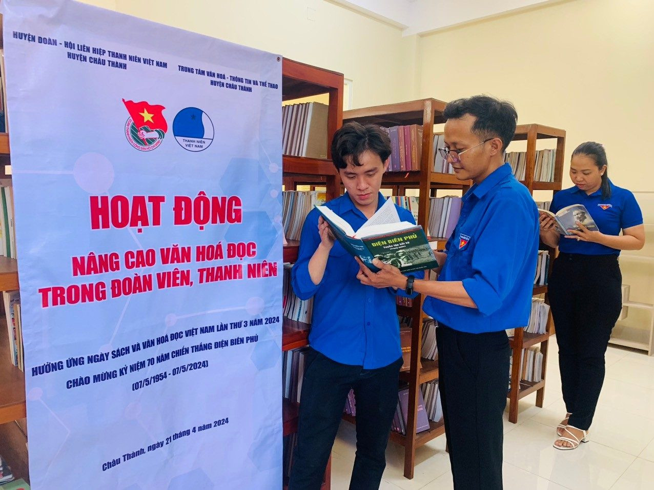 Ngày 21/4/2024, tại Thư viện Trung tâm Văn hoá – Thông tin và Thể thao huyện Châu Thành, Huyện đoàn – Hội LHTN Việt Nam phối hợp Trung tâm Văn hoá – Thông tin và Thể thao huyện tổ chức hoạt động nâng cao văn hoá đọc trong đoàn viên, thanh niên hưởng ứng Ngày sách và Văn hoá đọc Việt Nam lần thứ 3 năm 2024 và Chào mừng Kỷ niệm 70 năm chiến thắng Điện Biên Phủ (07/51954 – 07/5/2024).