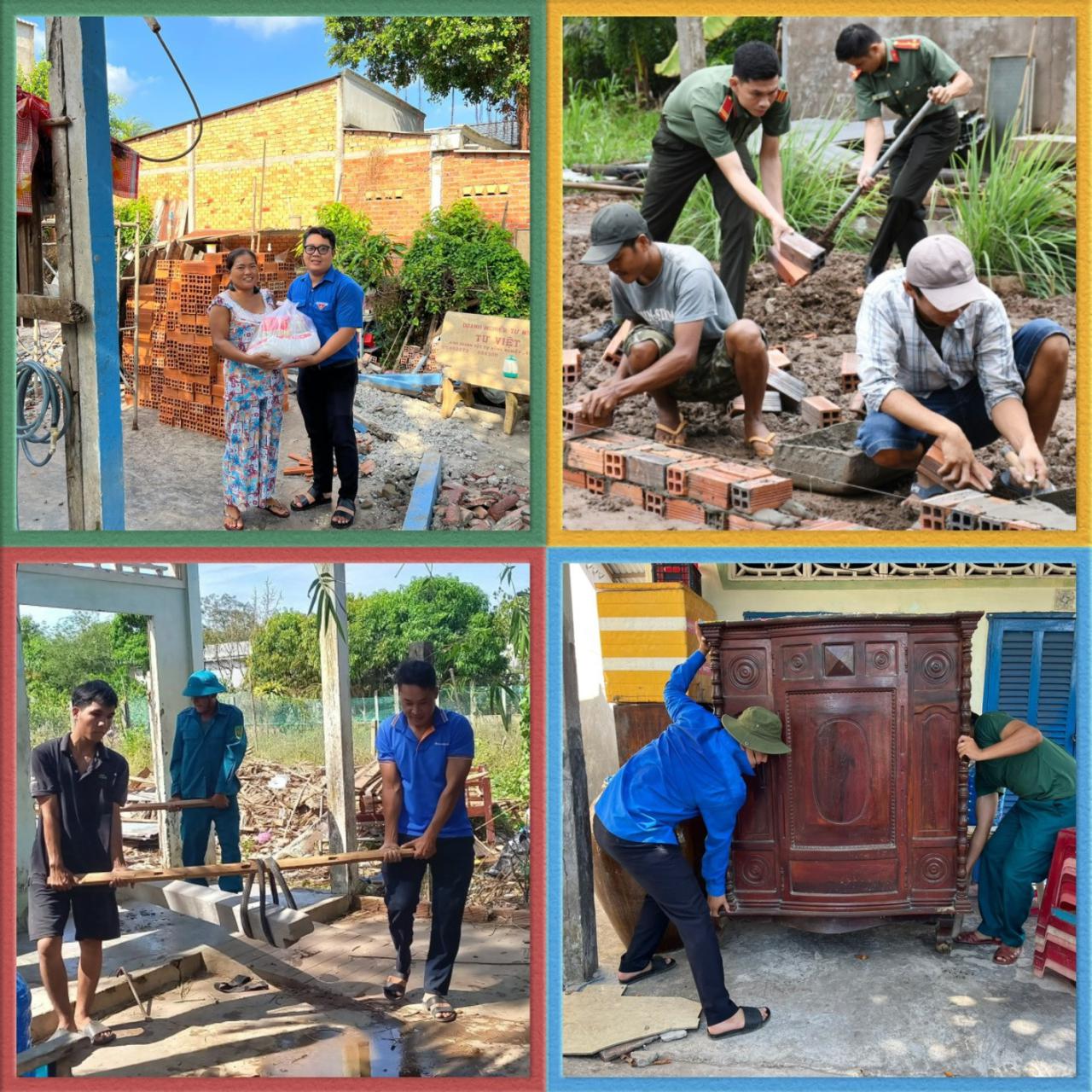 (ĐVTN thành phố Trà Vinh & ĐTN Công an huyện Châu Thành tham gia hỗ trợ tháo dỡ nhà cũ, vận chuyển vật liệu xây dựng)