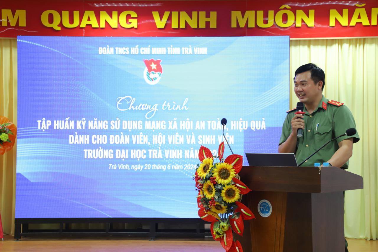 Đồng chí Nguyễn Quốc Toàn – Ủy viên Ban Chấp hành Tỉnh đoàn, Phó Trưởng Ban Thanh niên Công an tỉnh Trà Vinh tập huấn kỹ năng “Sử dụng mạng xã hội an toàn, hiệu quả”