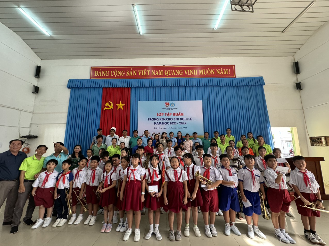 Chiều ngày 23/6/2024, tại trường Thực hành Sư phạm, Ban Thường vụ Tỉnh đoàn, Sở Giáo dục và Đào tạo phối hợp chỉ đạo Thành đoàn, Hội đồng Đội thành phố Trà Vinh tổ chức Bế mạc lớp tập huấn trống, kèn cho Đội Nghi lễ thành phố Trà Vinh năm học 2023 – 2024. Lớp tập huấn diễn ra từ ngày 17-23/6/2024, đây là lớp thứ 9 được tổ chức tại các huyện, thị xã, thành phố trong tỉnh.
