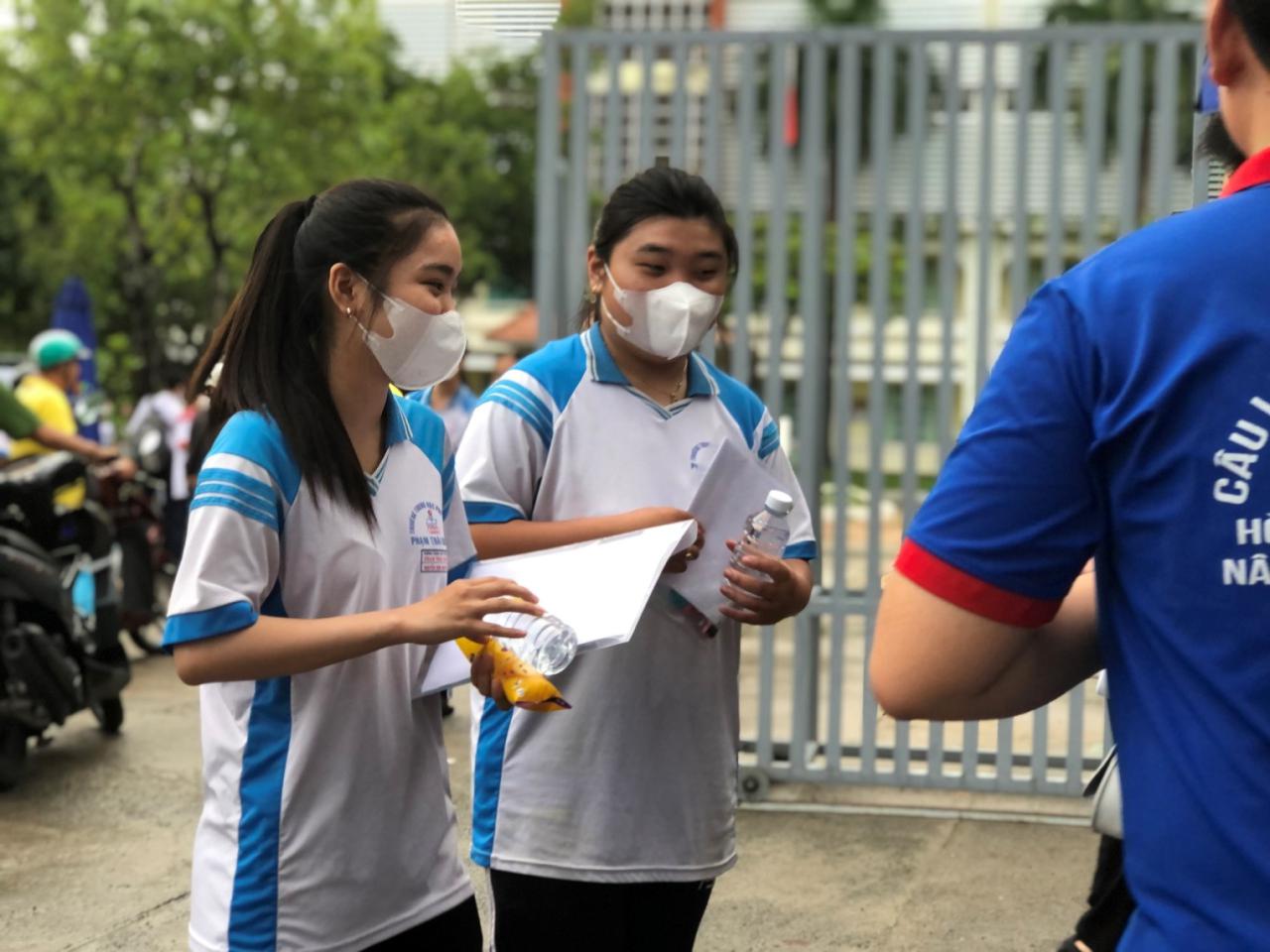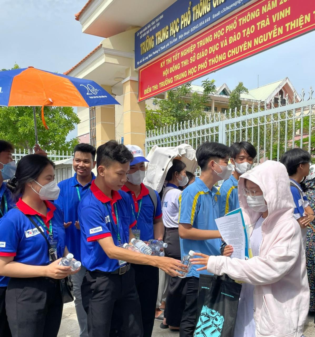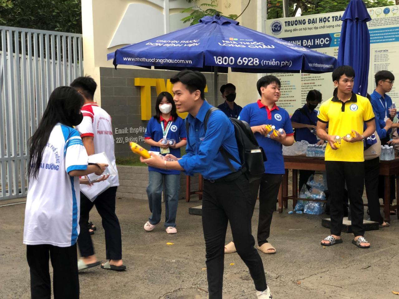 Các tình nguyện viên phát nước cho thí sinh