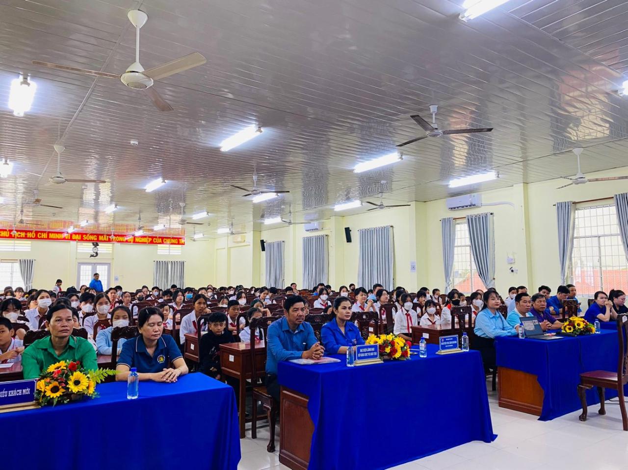 Tham dự Khai giảng có có đồng chí Nguyễn Thị Cẩm Hương, Phó Bí thư Tỉnh đoàn, Phó Chủ tịch Thường trực Hội đồng Đội tỉnh; đồng chí Thạch Thành Trung – Phó trưởng phòng Chính trị tư tưởng, Sở Giáo dục và Đào tạo; đồng chí Lưu Nhất Mỹ Chi – Chuyên viên phòng Đào tạo và Quản lý khoa học – Học viện Thanh thiếu niên Việt Nam; đại diện Hội đồng Đội các huyện, thị xã, thành phố; các anh chị phụ trách và 90 em thiếu nhi nòng cốt là cán bộ chỉ huy Liên đội, Chi đội, đội viên tiêu biểu.