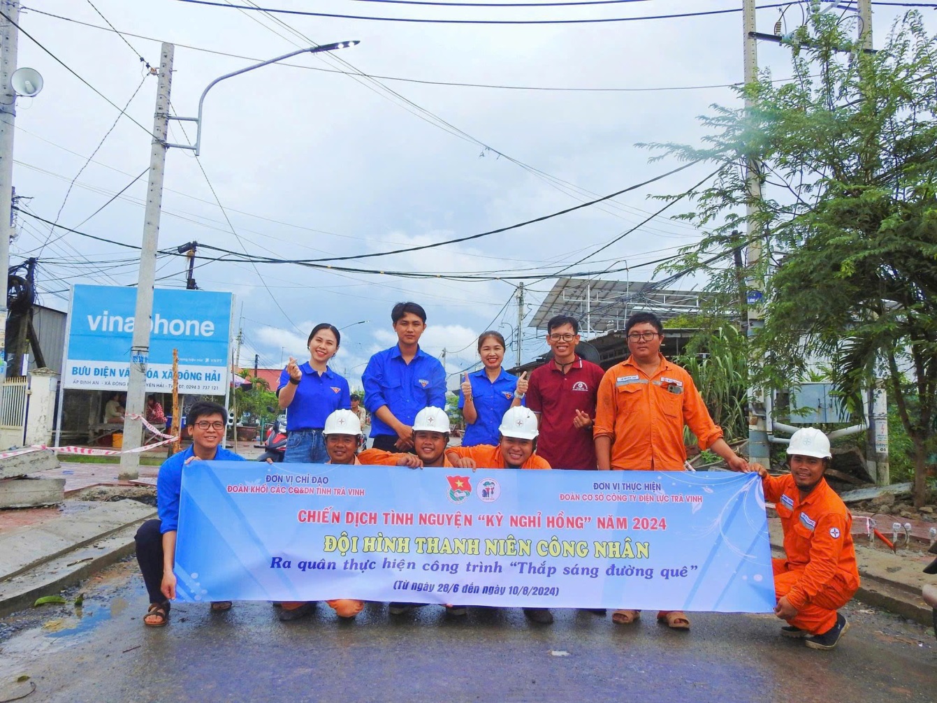 Nhằm phát huy vai trò xung kích, tình nguyện của tuổi trẻ trong việc đảm nhận, thực hiện các công trình, phần việc góp phần xây dựng nông thôn mới và nông thôn mới nâng cao. Ngày 20/7/2024, Ban Thường vụ Tỉnh đoàn chỉ đạo Ban Thường vụ Đoàn Khối các cơ quan và Doanh nghiệp tỉnh thành lập Đội hình thanh niên công nhân (do Đoàn cơ sở Công ty Điện lực Trà Vinh làm đơn vị thường trực hoạt động) triển khai thực hiện công trình “Thắp sáng đường quê” cho người dân tại xã Đông Hải, huyện Duyên Hải.