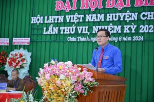 Anh Nguyễn Thanh Nhã, Ủy viên Trung ương Hội, Phó Bí thư Thường trực Tỉnh đoàn, Chủ tịch Hội LHTN Việt Nam tỉnh phát biểu chỉ đạo tại Đại hội đại biểu Hội LHTN Việt Nam huyện Châu Thành, khóa VII, nhiệm kỳ 2024 – 2029
