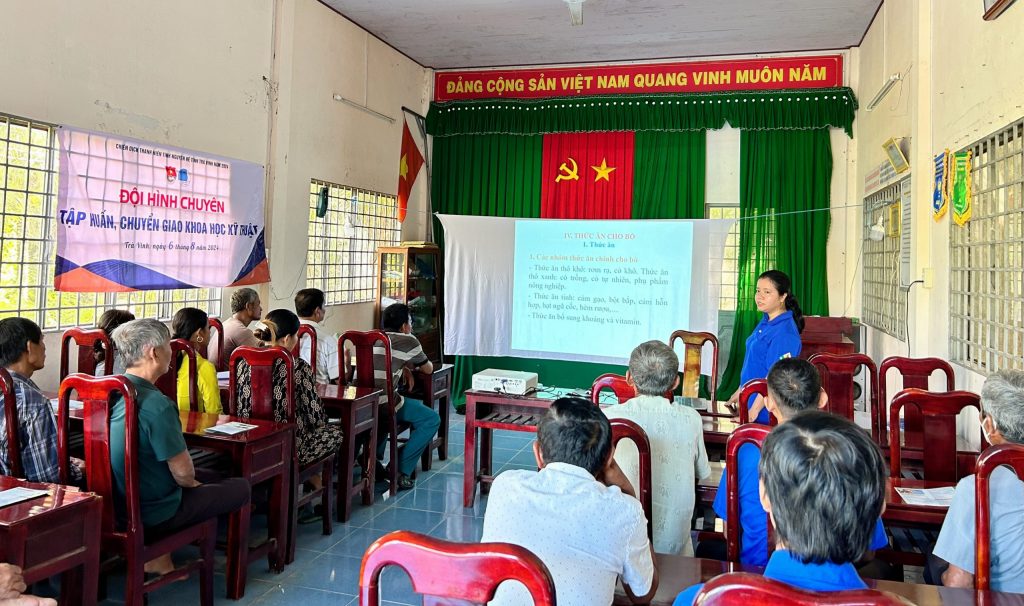 Ngày 6/8, Đội hình tri thức trẻ tình nguyện xây dựng nông thôn mới cấp tỉnh đã tổ chức tập huấn chuyển giao khoa học kỹ thuật về phòng, chống bệnh trên bò cho đoàn viên, thanh niên và người dân trên địa bàn xã Phước Hưng, huyện Trà Cú.