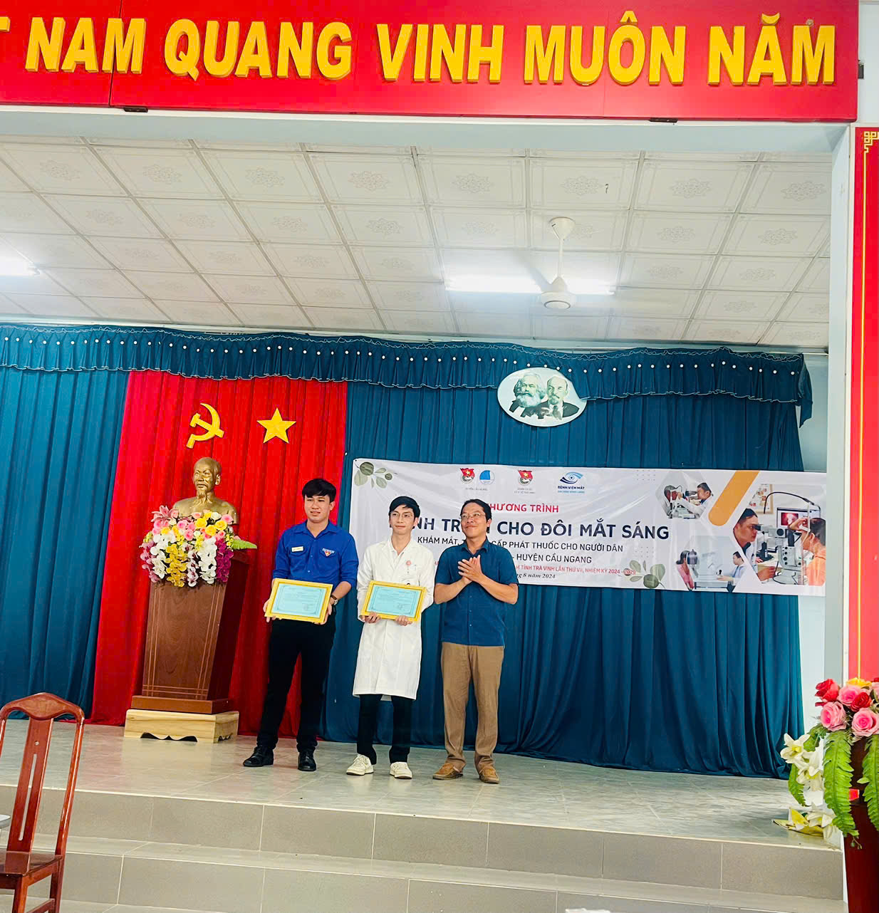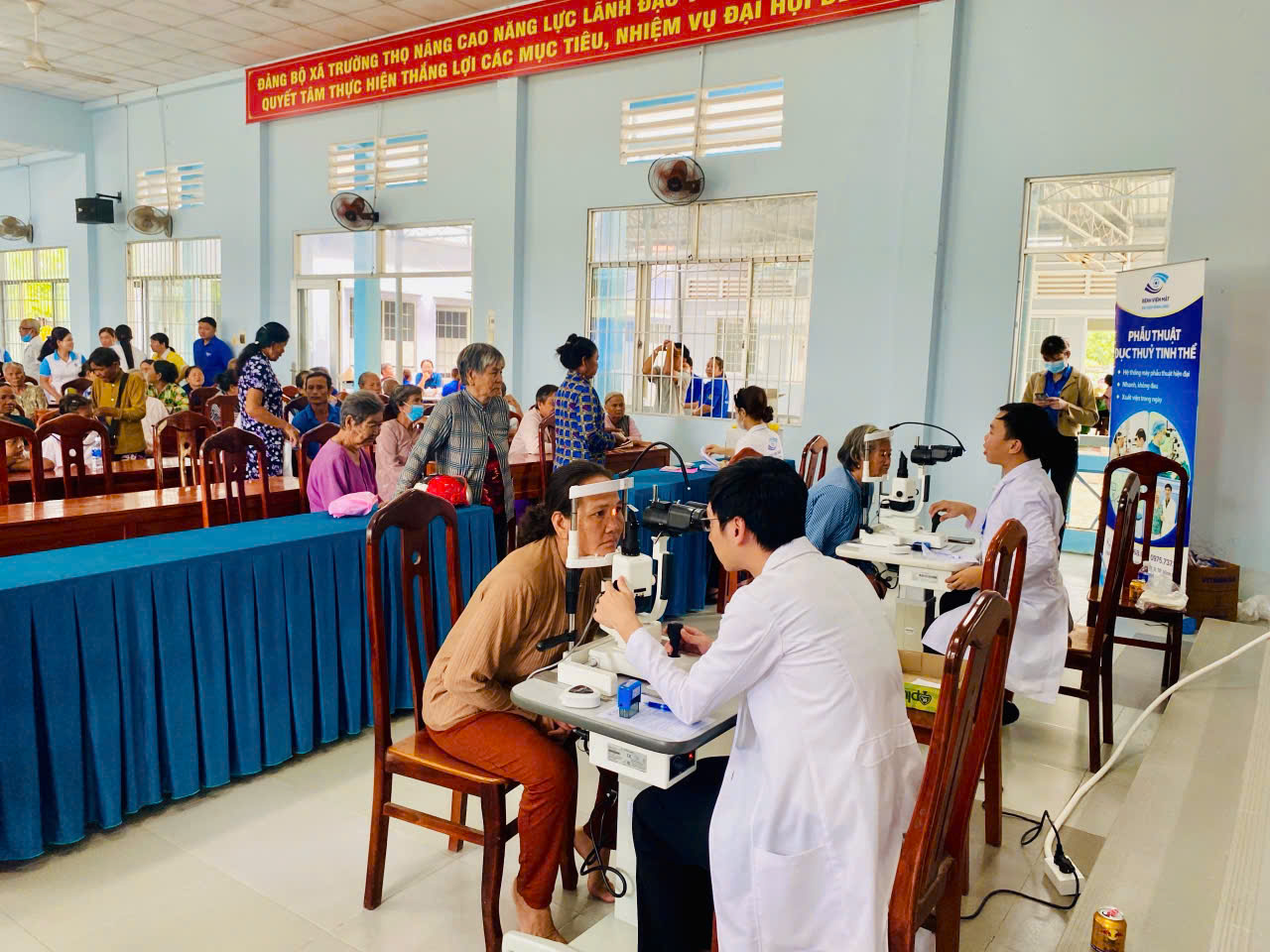 Hưởng ứng Tháng cao điểm chào mừng Đại hội đại biểu Hội Liên hiệp Thanh niên Việt Nam tỉnh Trà Vinh lần thứ VII, nhiệm kỳ 2024 – 2029. Sáng nay, ngày 31/8/2024, Huyện đoàn – Ủy ban Hội LHTN Việt Nam huyện Cầu Ngang phối cùng Đoàn cơ sở Sở Y tế tỉnh Trà Vinh, Bệnh viện Mắt Sài Gòn chi nhánh Vĩnh Long và Ủy ban nhân dân xã Trường Thọ tổ chức thực hiện Chương trình “Hành trình cho đôi mắt sáng” để khám, tư vấn các bệnh lý về mắt và cấp phát thuốc miễn phí cho người dân.