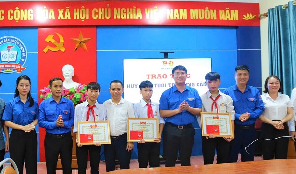 ĐTN: Chiều 30/8, thừa uỷ quyền của BCH Trung ương Đoàn, đồng chí Nguyễn Viết Hải Đăng, Phó Bí thư Tỉnh Đoàn, Chủ tịch Hội đồng Đội tỉnh Hà Tĩnh đã trao tặng Huy hiệu “Tuổi trẻ dũng cảm” cho 03 học sinh của trường THCS Long Sơn, huyện Thạch Hà đã có hành động dũng cảm cứu người đuối nước.