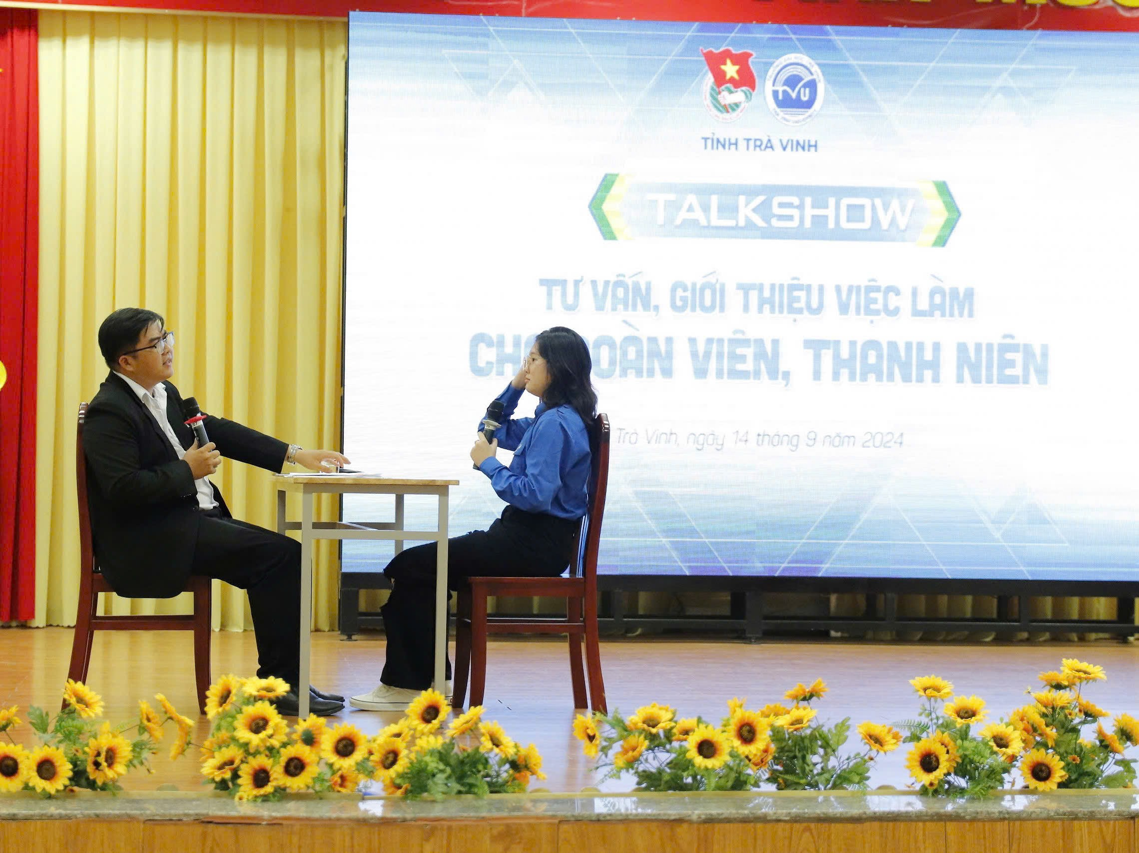 Nhằm đồng hành cùng đoàn viên, thanh niên trong nghề nghiệp, việc làm và nắm bắt tình hình thị trường lao động, ngày 14/9/2024, tại Trường Đại học Trà Vinh, Ban Thường vụ Tỉnh đoàn tổ chức chương trình Talkshow tư vấn, giới thiệu việc làm cho đoàn viên, thanh niên với chủ đề “Người trong ngành kể chuyện trong nghề”.