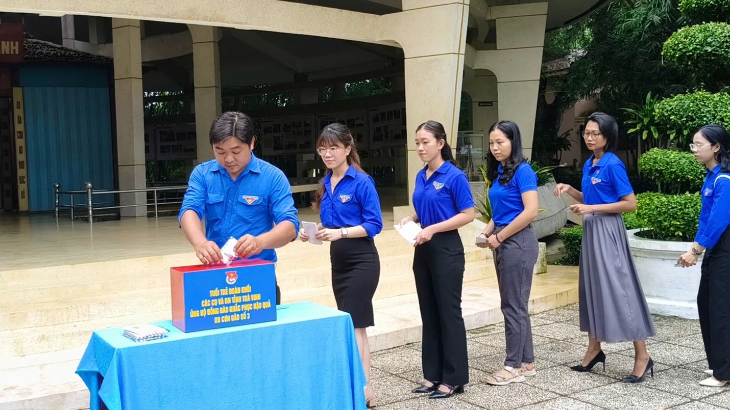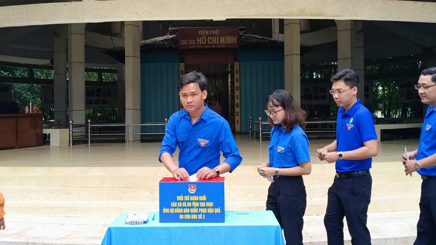Sau lời chia sẻ và phát động, toàn thể đoàn viên thanh niên khối các cơ quan và doanh nghiệp tỉnh đã ủng hộ, quyên góp được 78.452.000 đồng. Được biết trước đó ngày 16/9/2024, Ban Thường vụ Đoàn khối vận động Công ty TNHH Trần Thạch Cao Tân Huỳnh Phát ủng hộ 10.000.000 đồng cho đồng bào miền Bắc bị ảnh hưởng do cơn bão số 3 (Nguồn kinh phí được trao trực tiếp cho Ủy ban Mặt trận Tổ quốc tỉnh Trà Vinh). Dịp này, Đoàn viên thanh niên trong khối cũng đã thực hiện nghi lễ dâng hương tại Khu di tích lịch sử Đền thờ Chủ tịch Hồ Chí Minh.