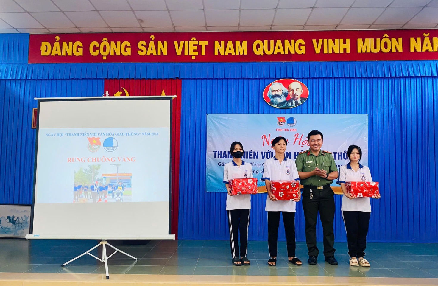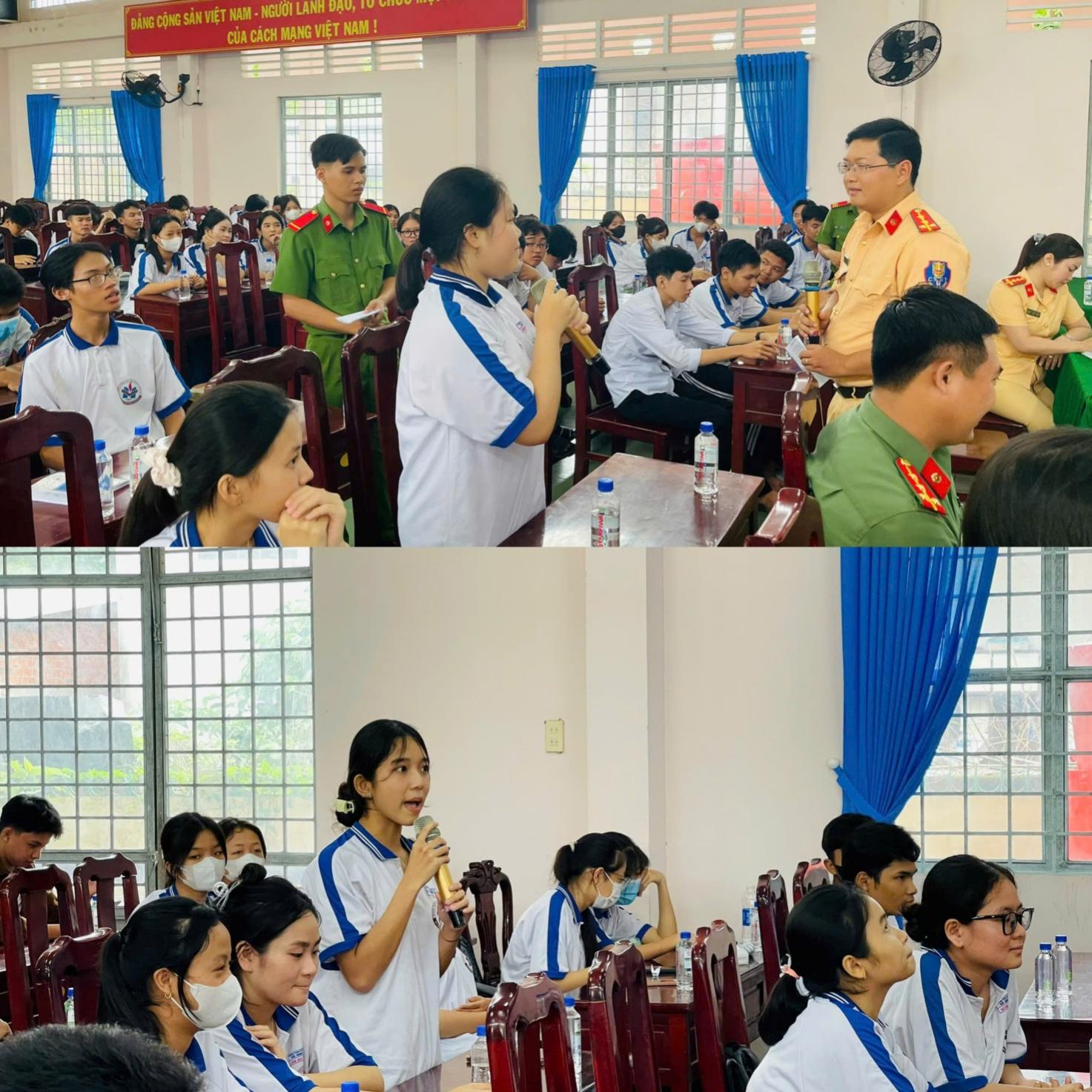 Chiều cùng ngày đã diễn ra buổi sinh hoạt chuyên đề về văn hóa giao thông cho các em học sinh Trung học phổ thông. Các em được báo cáo viên trang bị, hướng dẫn kỹ năng lái xe an toàn, sử dụng xe máy, xe đạp điện, nón bảo hiểm đúng cách, an toàn, đặc biệt là cuộc thi Rung chuông vàng “Tìm hiểu về Luật giao thông đường bộ – Văn hóa giao thông”.