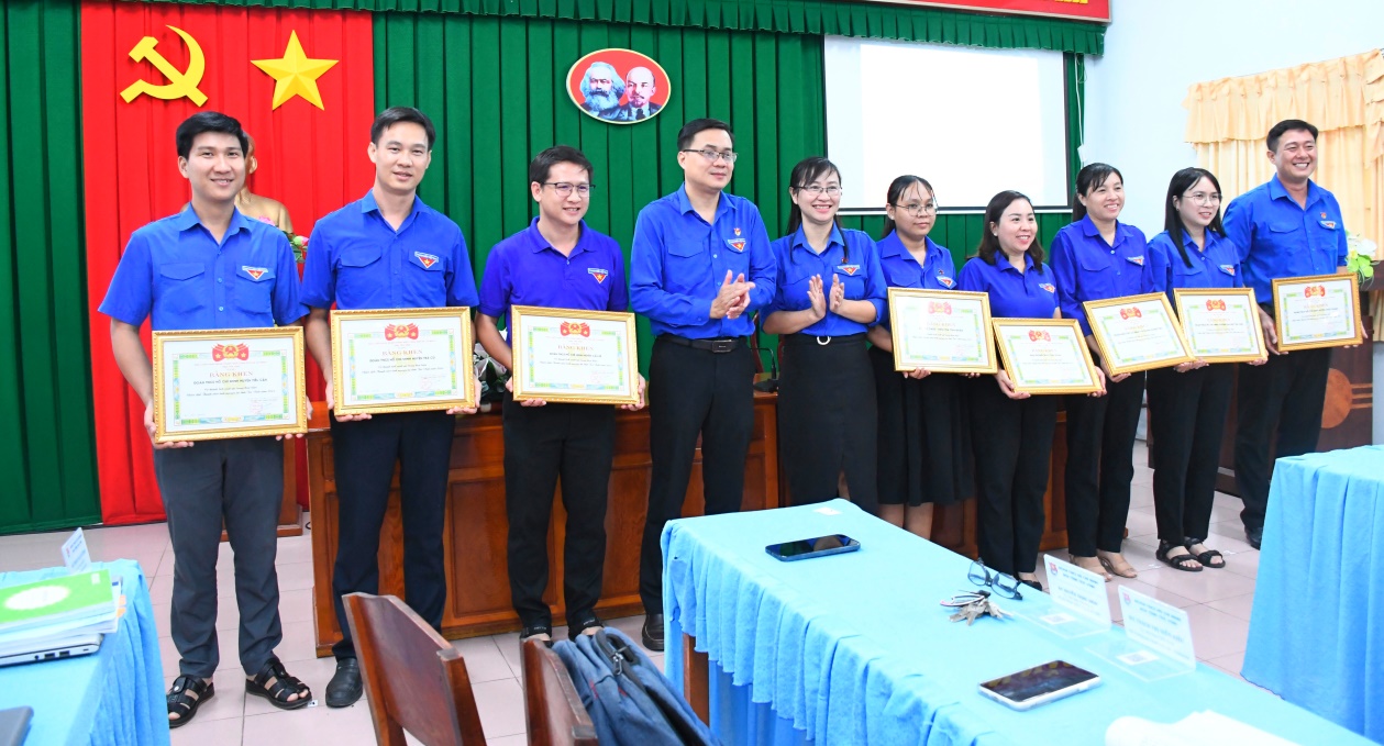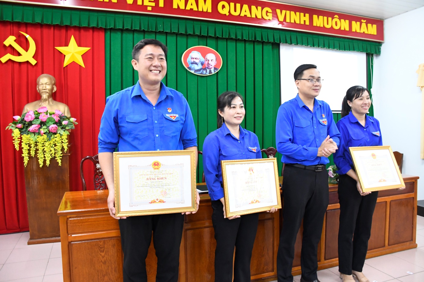 Đồng chí Nguyễn Thanh Nhã, Phó Bí thư Thường trực Tỉnh đoàn và đồng chí Nguyễn Thị Cẩm Hương, Phó Bí thư Tỉnh đoàn trao khen thưởng cho các cá nhân có thành tích xuất sắc trong chiến dịch