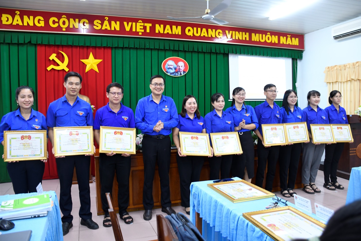 Nguyễn Thanh Nhã, Phó Bí thư Thường trực Tỉnh Đoàn trao bằng khen của Chủ tịch UBND tỉnh cho các tập thể, cá nhân