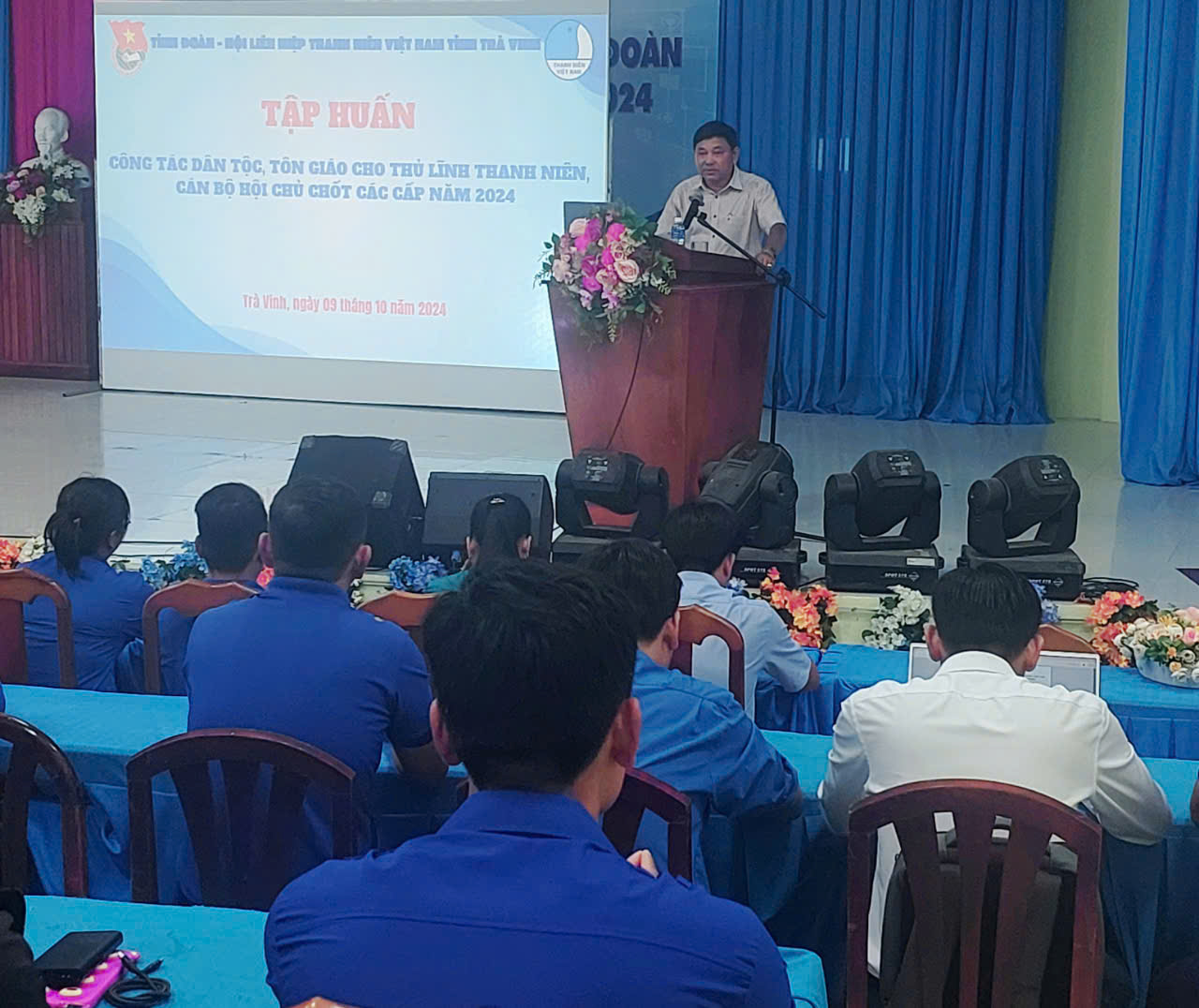 Nhằm triển khai hiệu quả Chương trình công tác Hội và phong trào thanh niên năm 2024. Ngày 09/10/2024, Ủy ban Hội Liên hiệp Thanh niên Việt Nam tỉnh Trà Vinh đã tổ chức lớp tập huấn chuyên đề “Phát huy vai trò người có uy tín trong công tác dân tộc, tôn giáo” cho 85 cán bộ Hội các cấp và thủ lĩnh thanh niên dân tộc, tôn giáo.