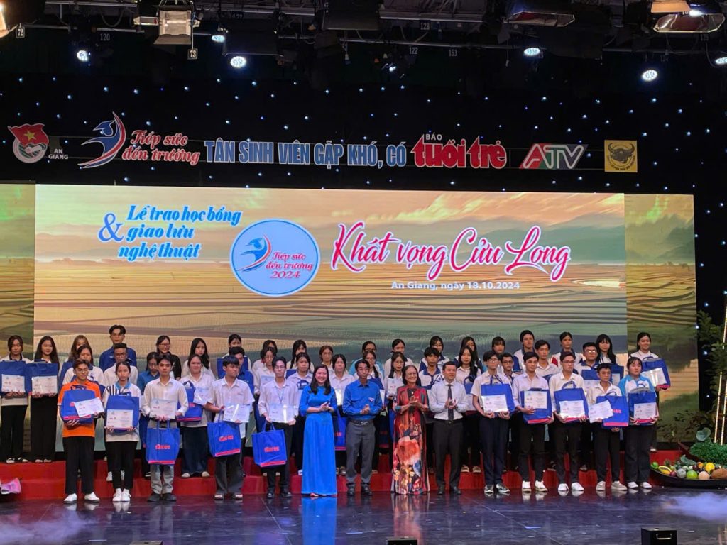 Chiều ngày 18/10/2024, lễ trao học bổng “Tiếp sức đến trường” cho các tân sinh viên vượt khó học giỏi của 11 tỉnh Đồng bằng sông Cửu Long do Báo Tuổi Trẻ phối hợp Ban Thường vụ Tỉnh đoàn An Giang, Đài Phát Thanh Truyền hình An Giang tổ chức và Bạn đọc Báo Tuổi Trẻ tài trợ tại Đài Phát thanh – Truyền hình An Giang. Tại Chương trình, Ban tổ chức trao 100 suất học bổng cho các em sinh viên mỗi suất trị giá 15.000.000 đồng.